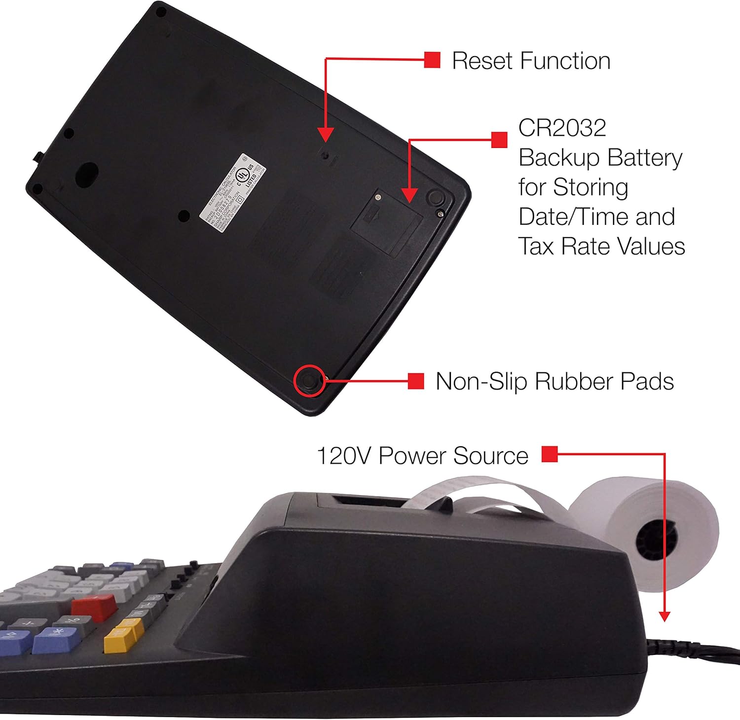 - SUPER FAST TAPE PRINTING: 3.7 lines/sec. in two colors (positive numbers in black, negative numbers in red) on standard size paper rolls.
