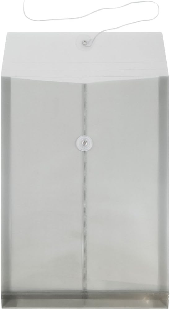 JAM PAPER Plastic Envelopes with Button & String Tie Closure - Legal Open End - 9 3/4 x 14 1/2 - Smoke Gray - 12/Pack