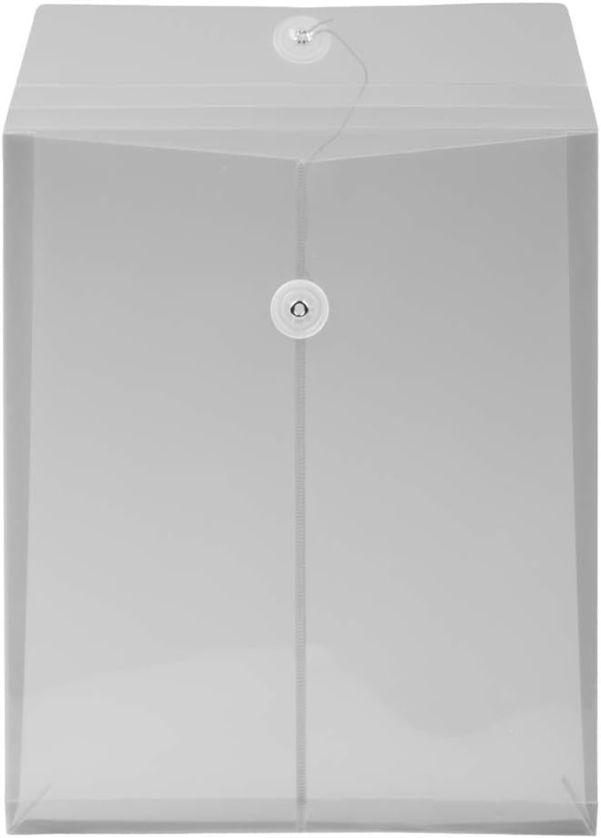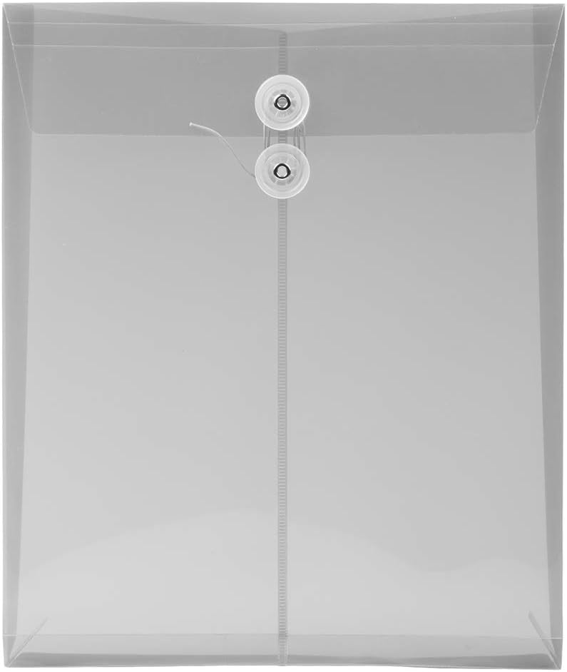 JAM PAPER Plastic Envelopes with Button & String Tie Closure - Letter Open End - 9 3/4 x 11 3/4 - Smoke Gray - 12/Pack