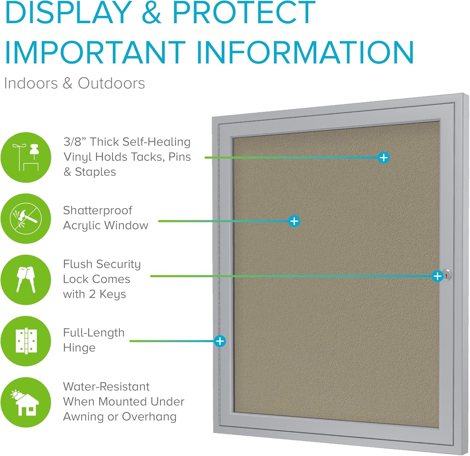 - SECURE YOUR DOCUMENTS: With this locking bulletin board, the doors feature full-length hinges, flush mount locks, and keys for added security.
