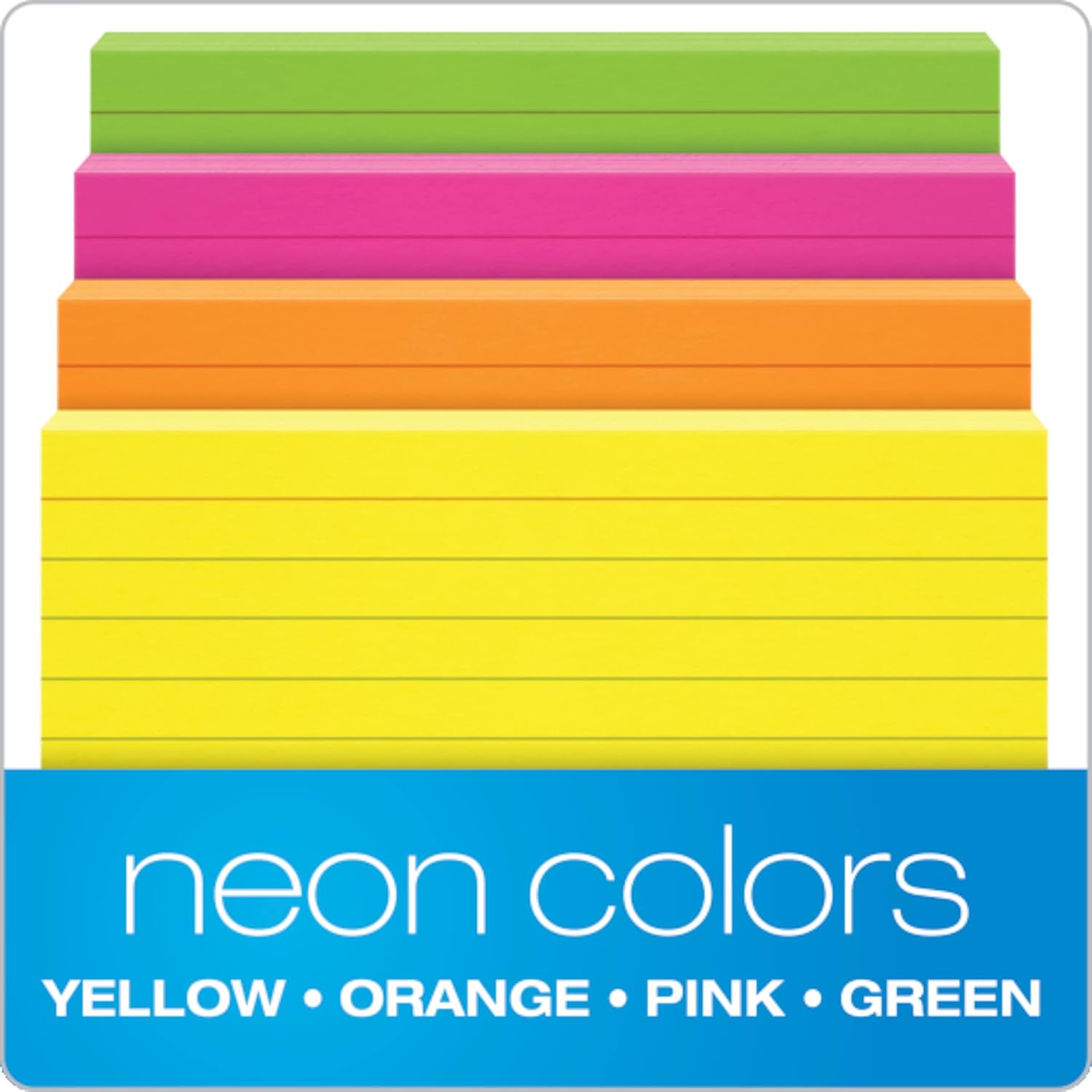 Oxford Neon Index Cards, 3" x 5", Ruled, Assorted Colors, 300 Per Pack (81300EE)