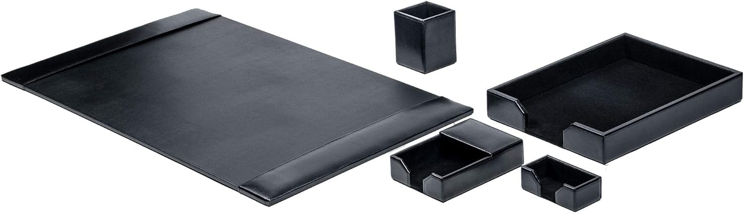 Dacasso Black Bonded Leather 5-Piece Desk Set