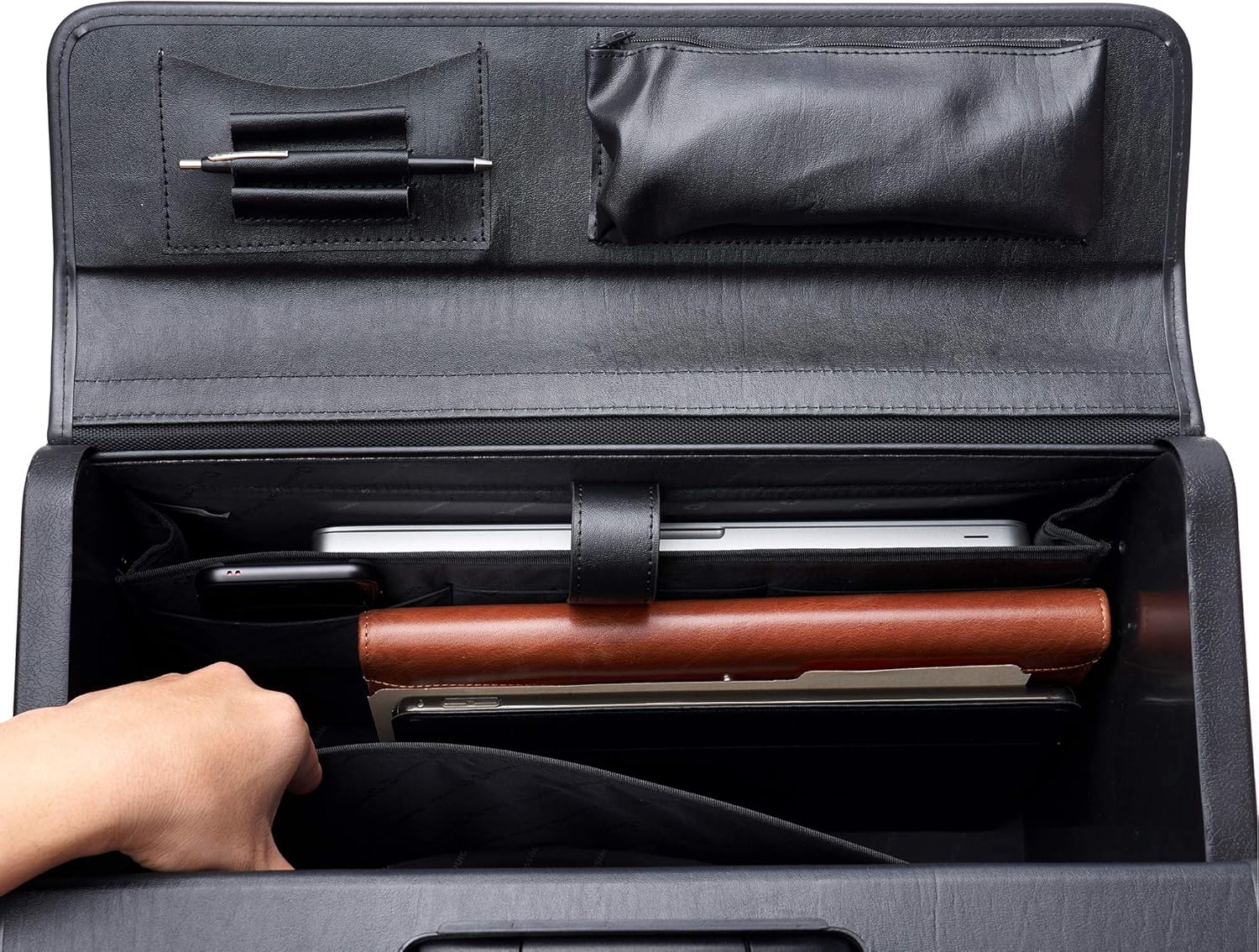 - Safe & Secure : Our laptop bag with wheels is built with a strong hard-sided frame for durability. This briefcase features securely riveted attachments for all components like the telescopic rolling handle, top carry handle, and smooth in-line skate wheels. The rolling briefcase leatherette finish adds a touch of sophistication while ensuring long-lasting performance.