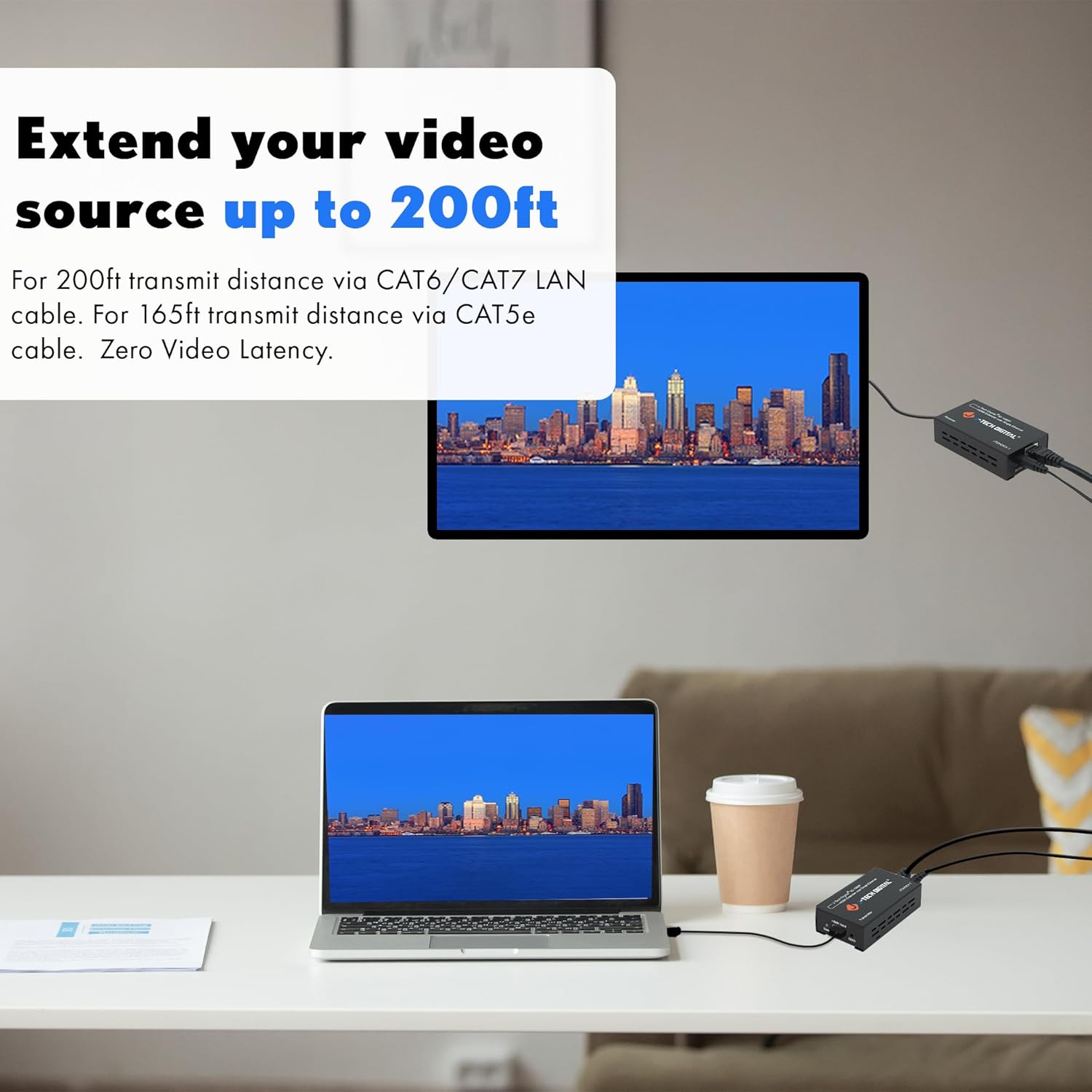 - šššššš šššš ššššš šššššš šš šš 150š š - For 150ft transmit distance via CAT6/CAT7 LAN cable. For 165ft transmit distance via CAT5e cable. Zero Video Latency. NOTE: We recommend using direct HDMI to HDMI connections, avoid using signal converters or adapters at all costs.
