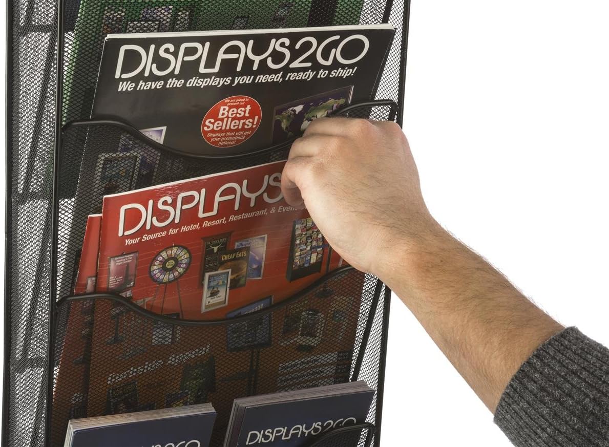 Displays2go Wall Mount Literature Rack, File Folder Organizer, 10 Dividable Pockets (Black Steel Mesh)