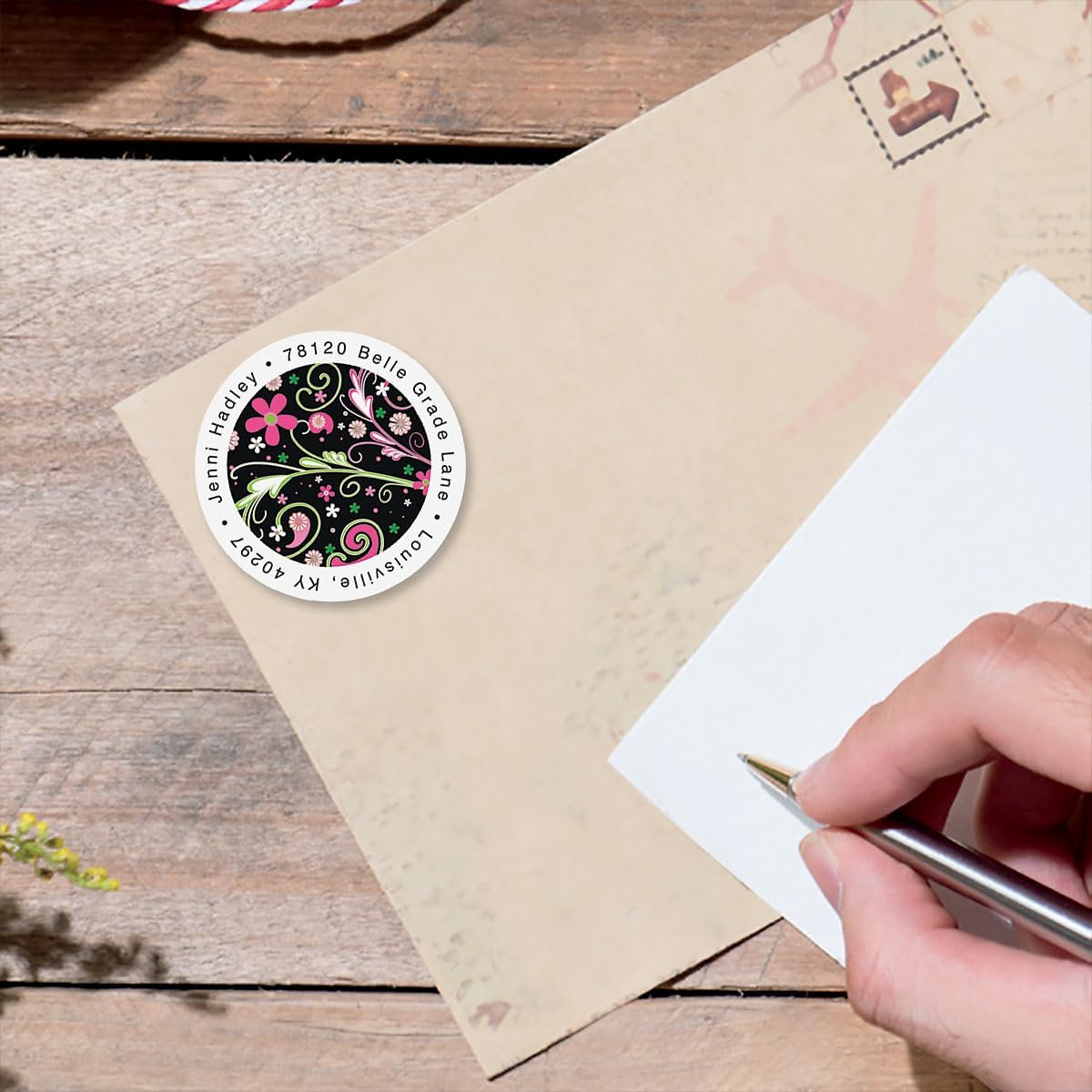 Colorful Images Fun Patterns Floral Return Address Mailing Labels, Personalize with Name & Address, Set of 144 Self Adhesive, Easy Peel Flat Label Sheets, Round, 3 Designs