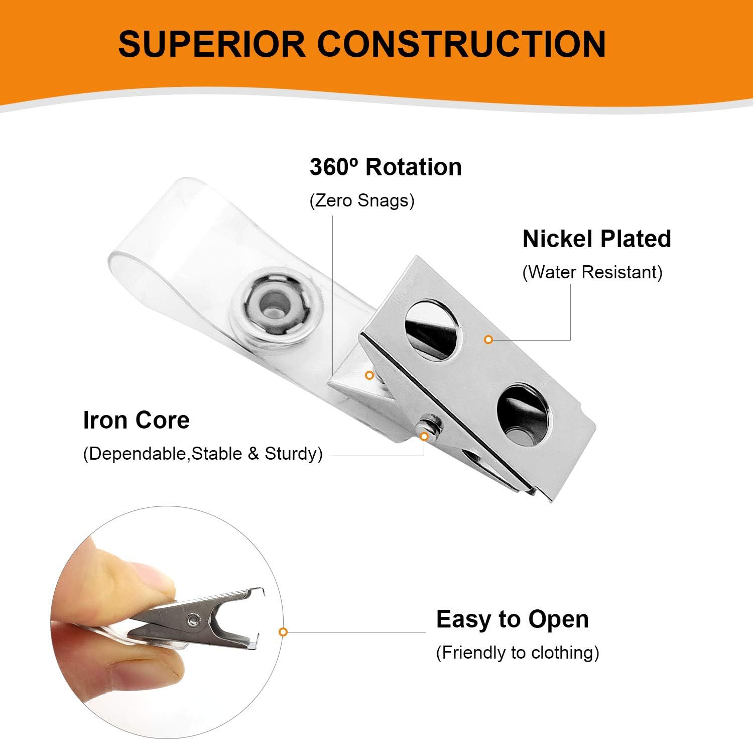 - Fits 5/8" slots on badge holders and plastic name tag holders, swivels 360 degrees