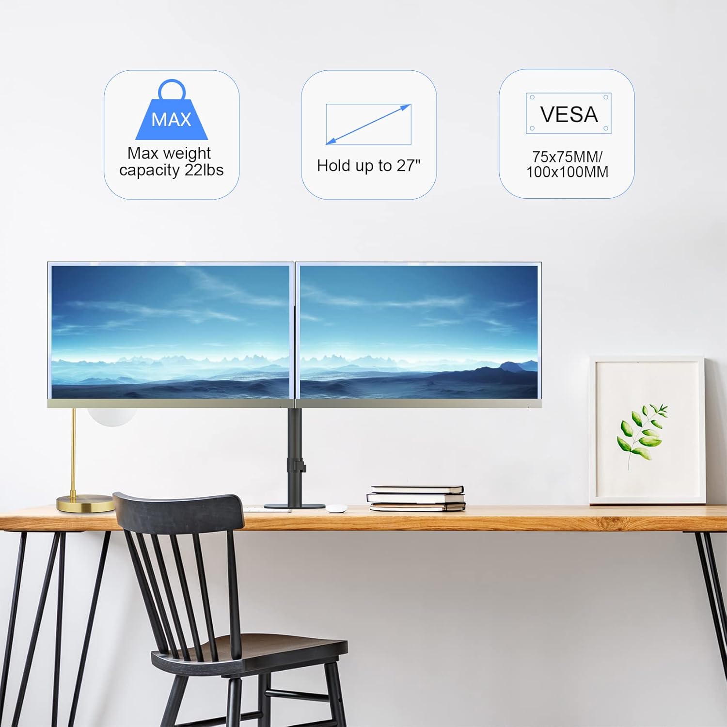 - Compatibility - Dual monitor mount ideal for most screens up to 27" and 22lbs each with 75x75mm or 100x100mm backside mounting holes.