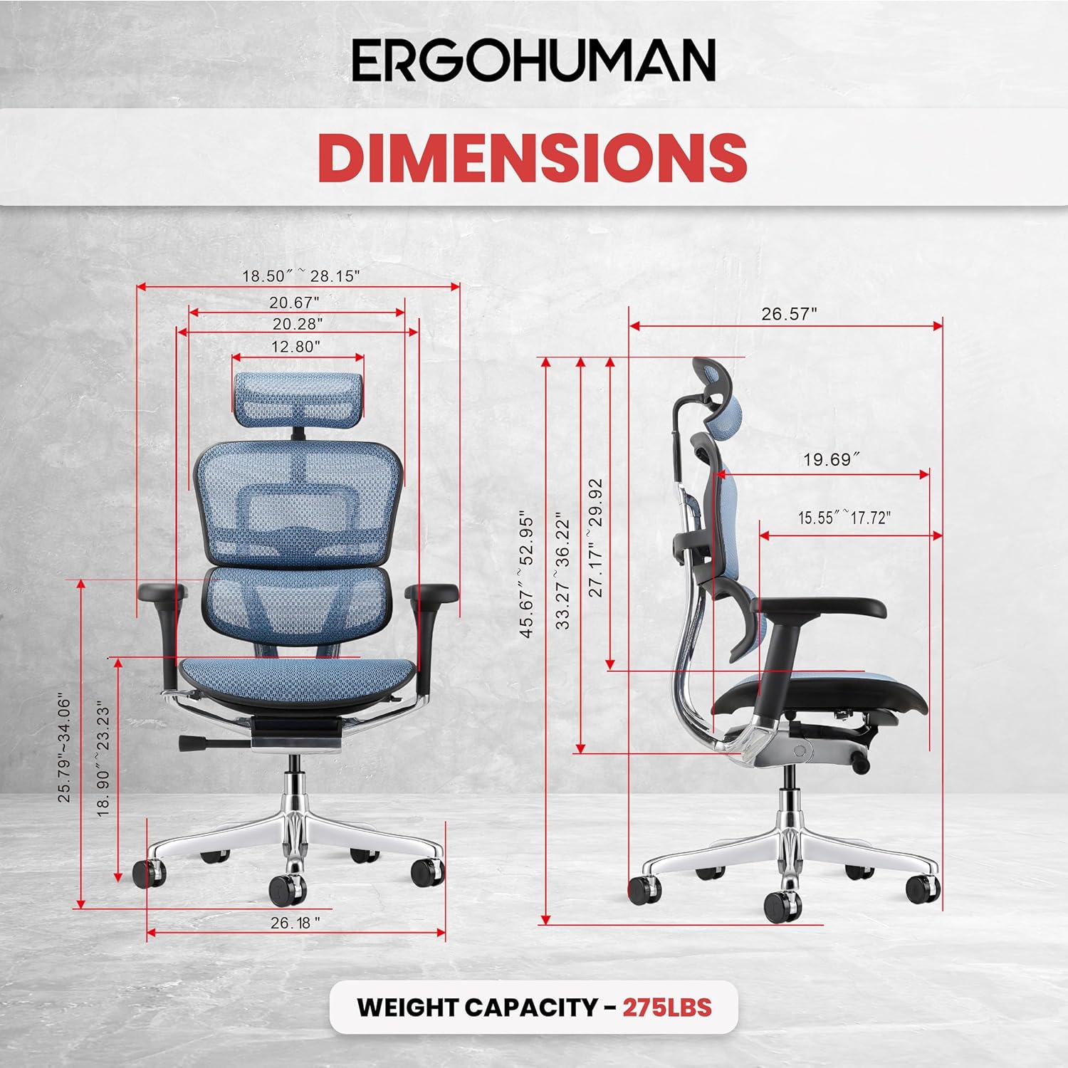 Ergohuman Eurotech ME7ERG GEN2 High Back Mesh Office Chair with Tilt Tension Control, Tilt Lock, Back Angle, Back Height, Synchro Tilt, Seat Height, Seat Depth, and Arm Height Adjustments, Blue
