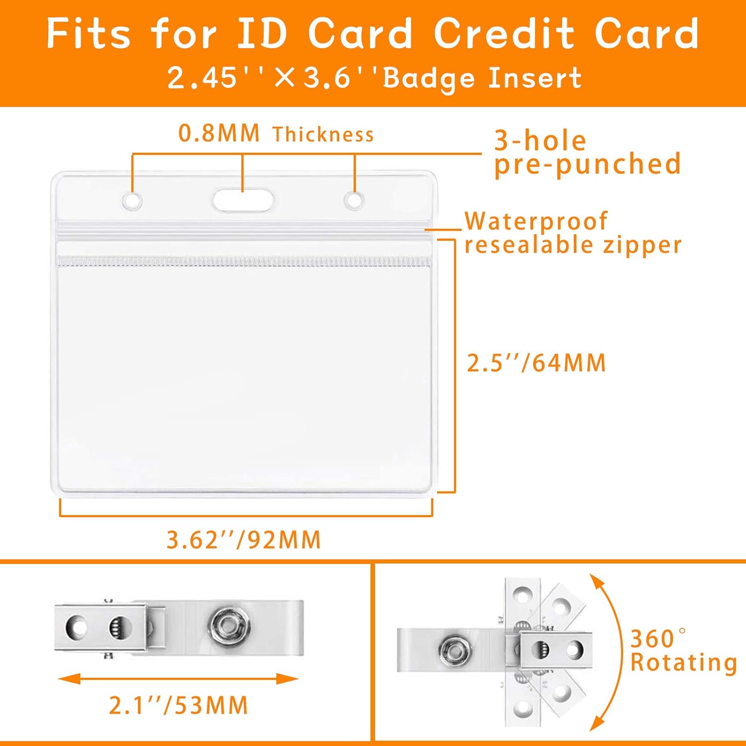 - Package&Product Specifications: 50 Pack horizontal badge holders measuring 85 X 100mm (3.35" X 3.94") with 61 X 9mm (2.35" X 3.6") internal dimensions, comes with a stainless steel name tag clip.