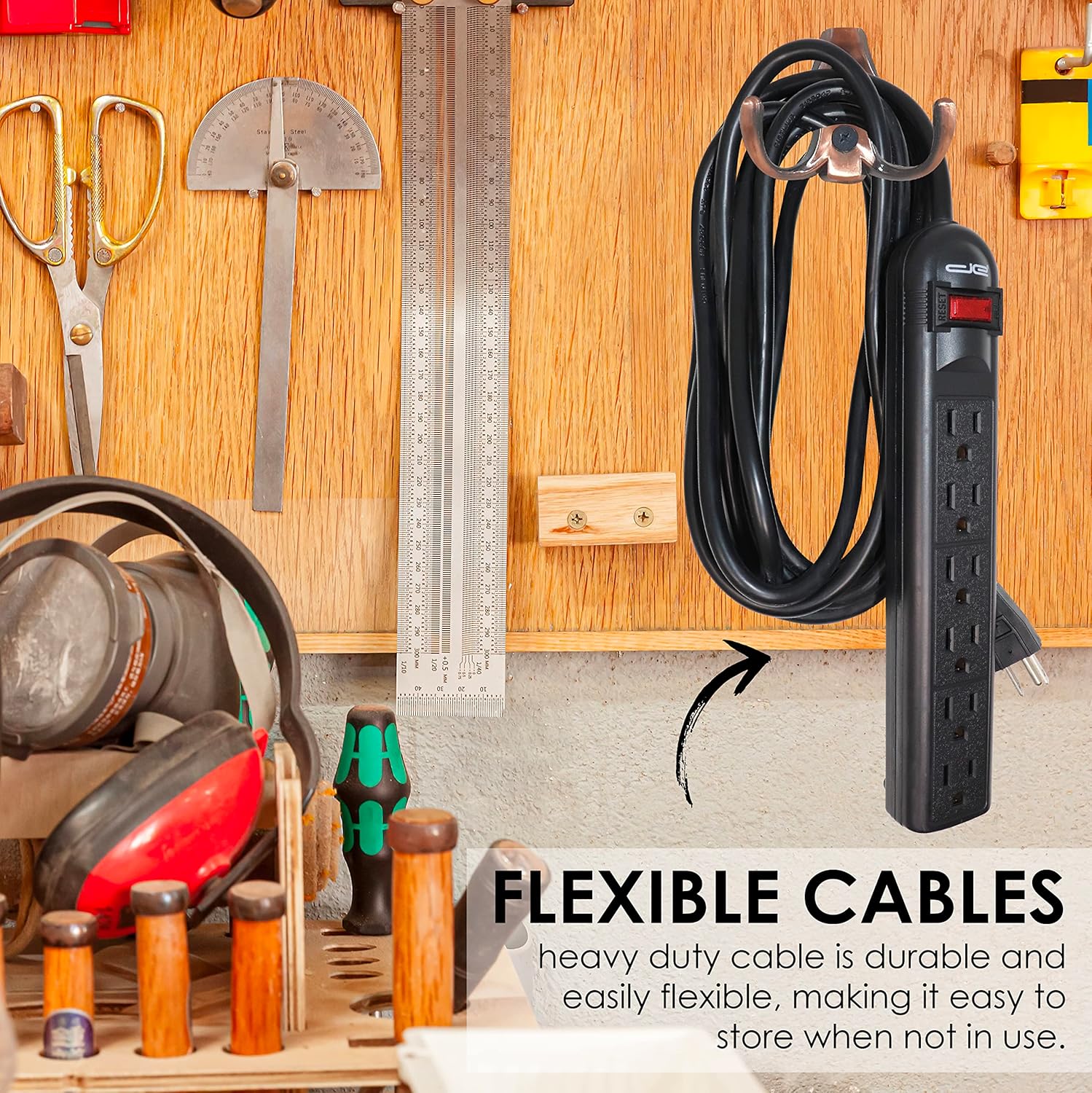 Digital Energy 6-Outlet Surge Protector Power Strip with 25-Ft Long Extension Cord, Black, ETL Listed/UL Standard