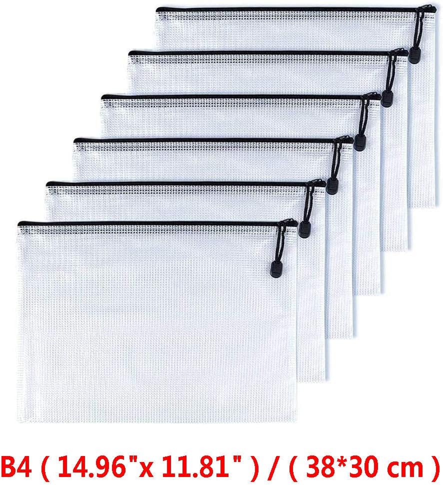 Oaimyy-B4(11.5"x 15",12 Pcs),Plastic Mesh Zipper Pouch Document Folders Bag & Zipper-Waterproof Zip File Folders for School Office Supplies, Travel,Puzzles Games Organizing Storage-Black