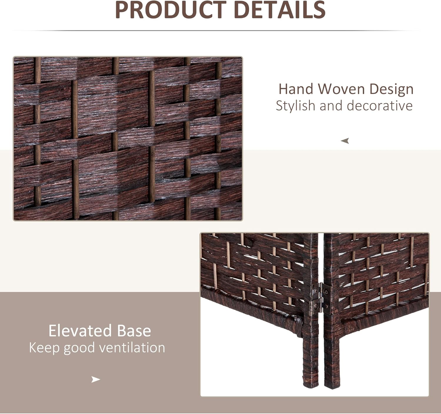 HOMCOM Room Divider, 3 Panel Folding Privacy Screen, 6FT Tall Portable Wicker Weave Partition Wall Divider for Bedroom, Home Office, Brown
