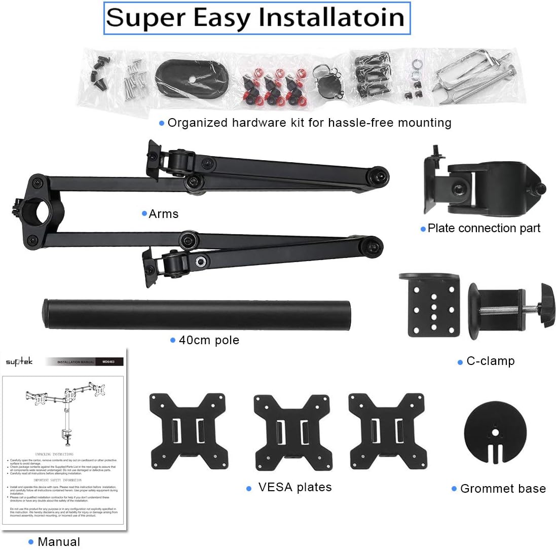 Suptek Triple LED LCD Monitor Desk Mount Heavy Duty Fully Adjustable Stand for 3 / Three Screens up to 27 inch (MD6463)