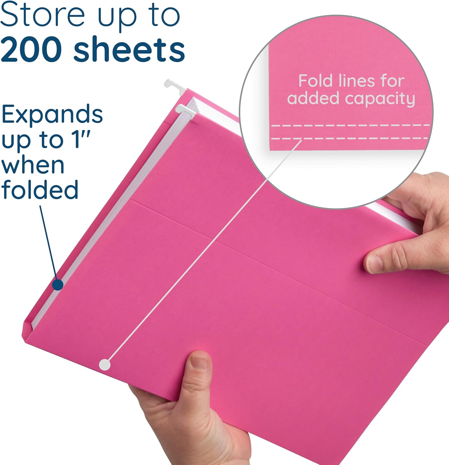 Blue Summit Supplies 25 Pink Hanging File Folders Letter Size, Reinforced Hanging File Folders Pink, Designed for Home and Office Color Coded Organization