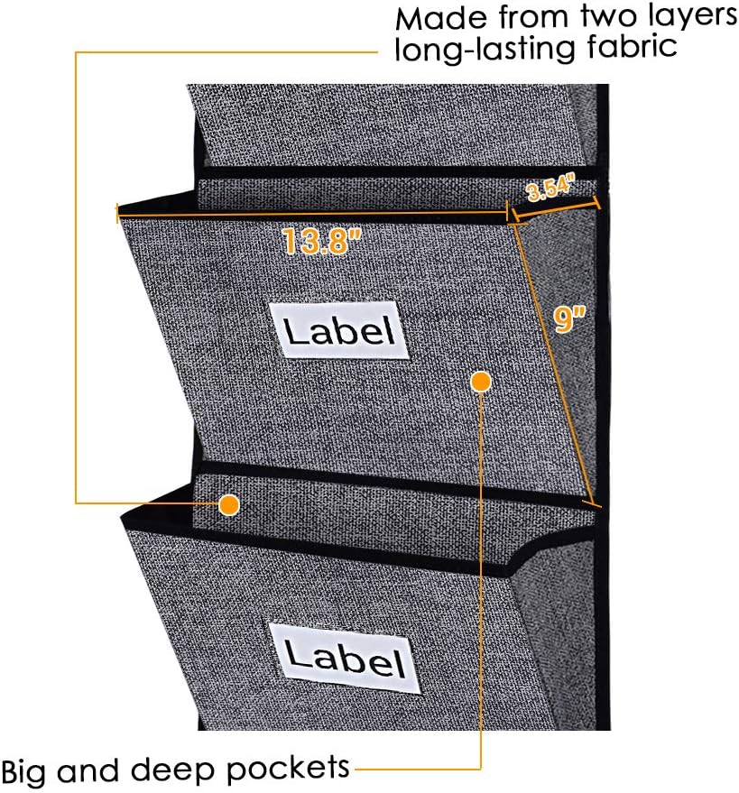 - [Heavy Duty and Well Made Quality] - This wall file organizer measures 13.8β wide and 50.39β long,made from two layers long-lasting fabric with thick card board inside, two non-corrosive grommets along the top for easy hanging