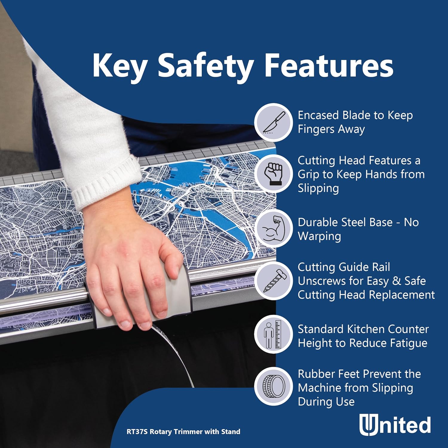 United Office Products RT37S Commercial Rotary Paper Trimmer with Stand and Fabric Catch Tray, Sturdy Metal Base, 38" Cut Length, 10 Sheet Capacity, Paper Cutter for Offices, Schools and Crafts