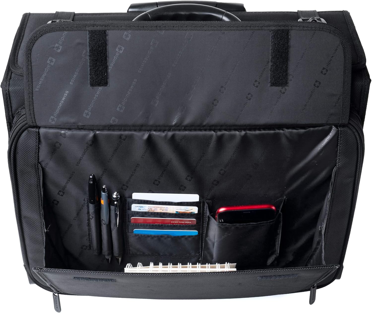 - EASY ORGANIZATION - Classic catalog case design main section with a legal-size hanging file divider. Front flap organizer pocket fully zips down on both sides for easy access with card slots, pen holder and a slip pouch. Zip around front accordion file divider accommodates letter A4 or legal-size documents. Top Handle & lockable 1.5” side release buckles. Luggage locks not included.