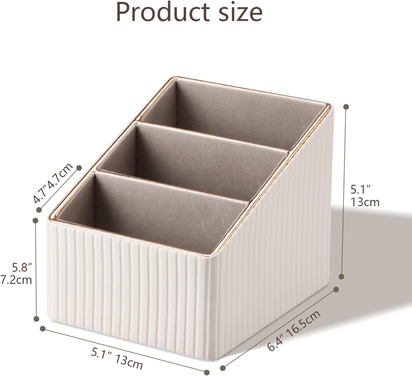 KINGFOM Remote Control Holder with 3 Compartments, Pu Leather Remote Caddy Desktop Organizer for TV, CD, Blu-Ray, Media Player, Heater Controllers and Cosmetics Office Supplies Light Beige