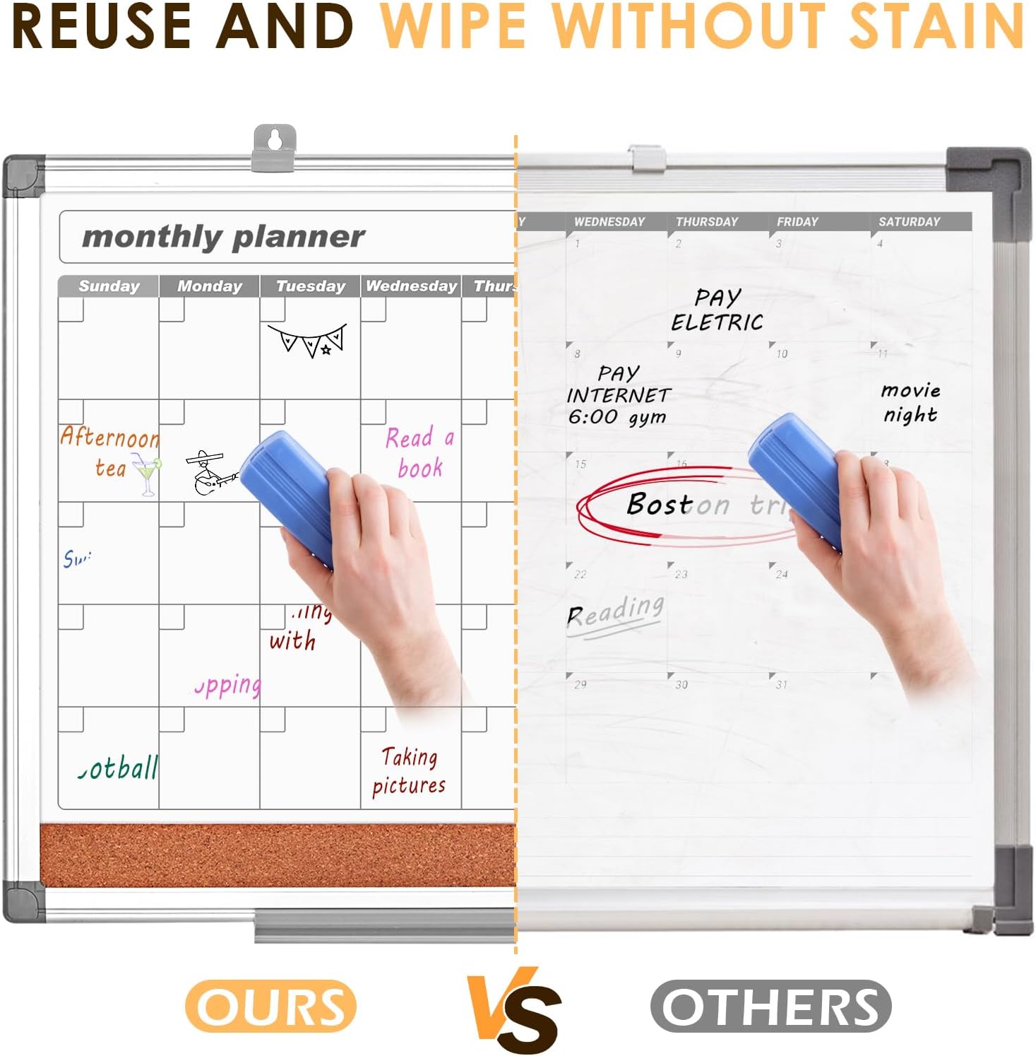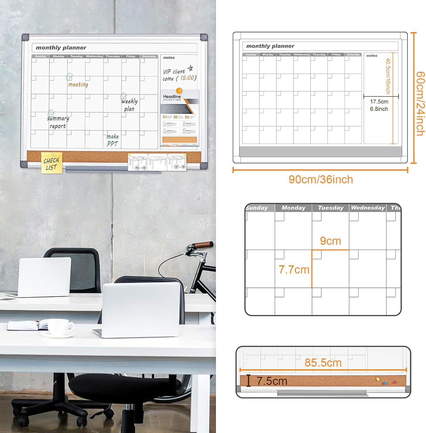 MAKELLO Dry Erase Calendar for Wall 36x24 in, Large Calendar Whiteboard with Cork Board for Office, Home, School, Family, Kitchen and Bedroom, 3' x 2'