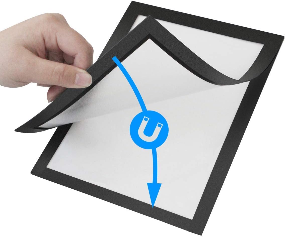 Document Sign Holder Pockets with Magnetic Back, Plastic Poster Picture Notice Display Frame for Fridge/Whiteboard/Chalkboard/Cabinet, 8.5 x 11.6 Inches, Black, 12 Pcs