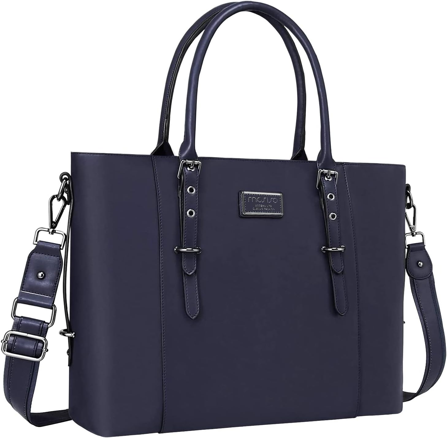 MOSISO PU Leather Laptop Tote Bag for Women, Waterproof Large Capacity Business Work Briefcase Shoulder Laptop Bag