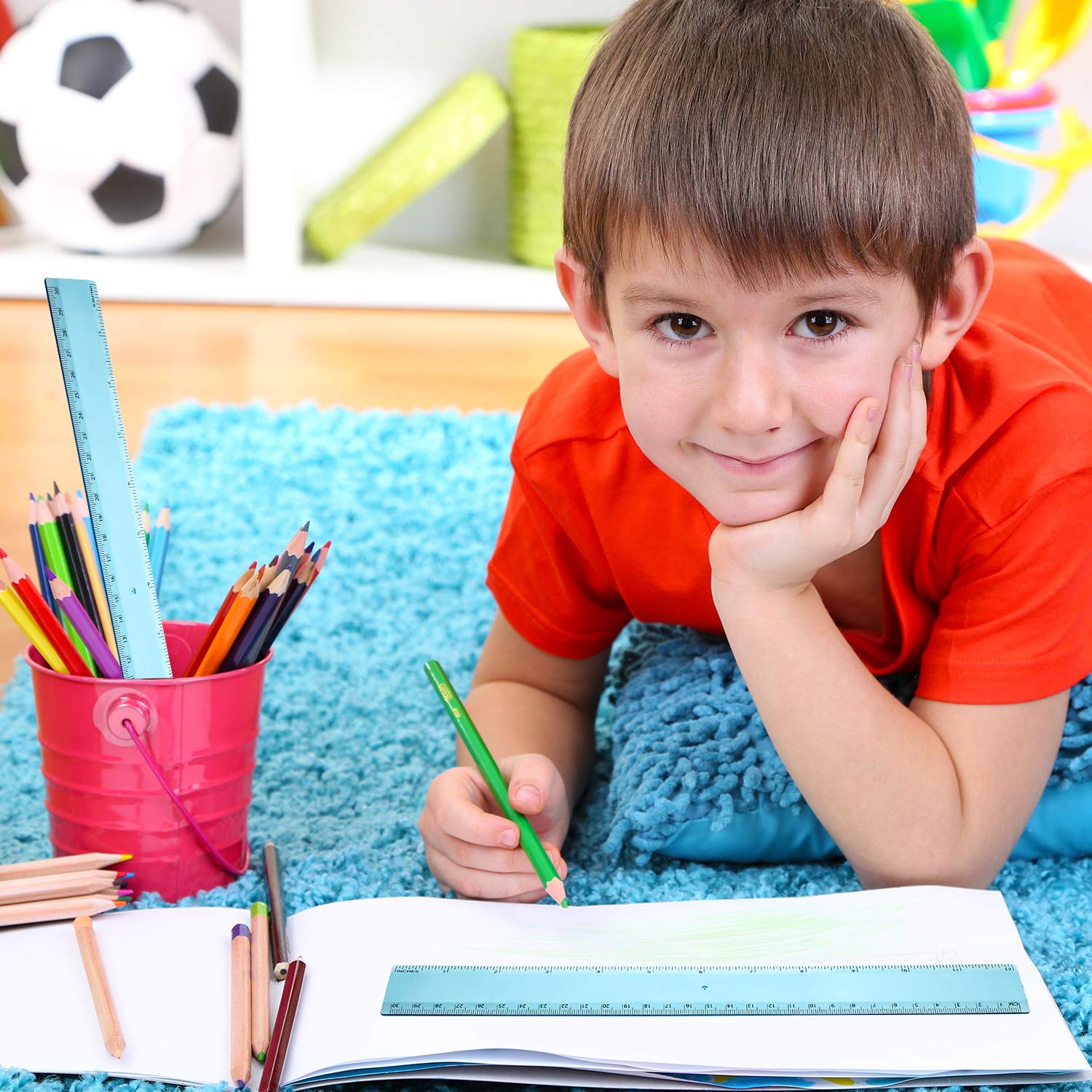 - Blue color rulers: bright blue color allows for a conspicuous view of numbers and letters on the page; With the blue mathematics ruler, you can measure an object easily