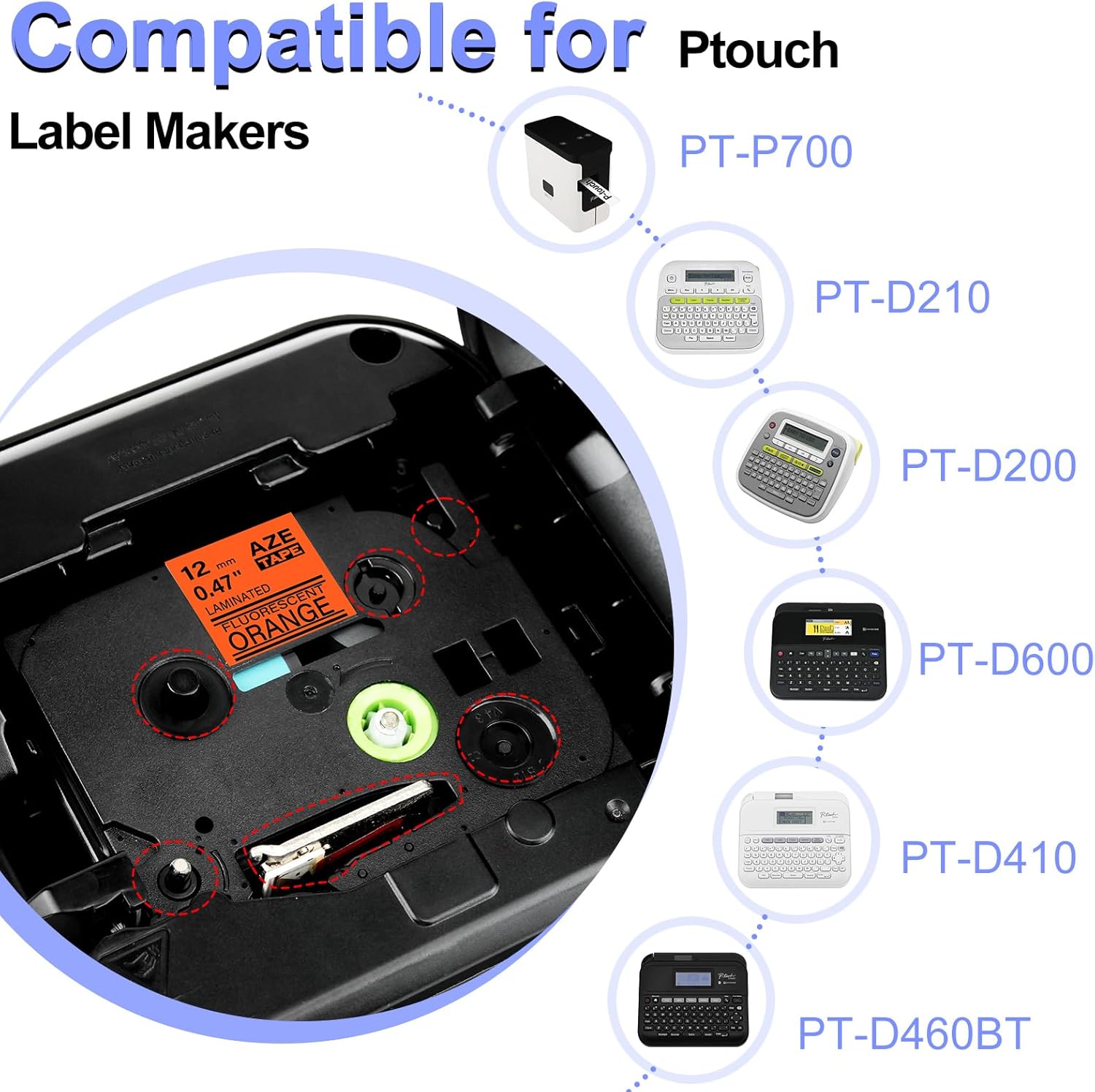 2 Pack Compatible for Brother Ptouch TZe-B31 TZ-B31 Laminated Label Maker Tape 12mm 0.47 Black on Fluorescent Orange Tape for PT-D200 PT-D210 PTH100 PT-D400