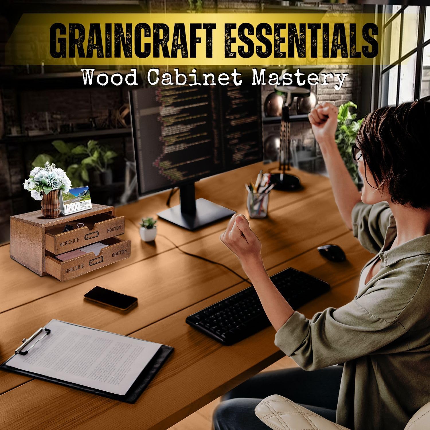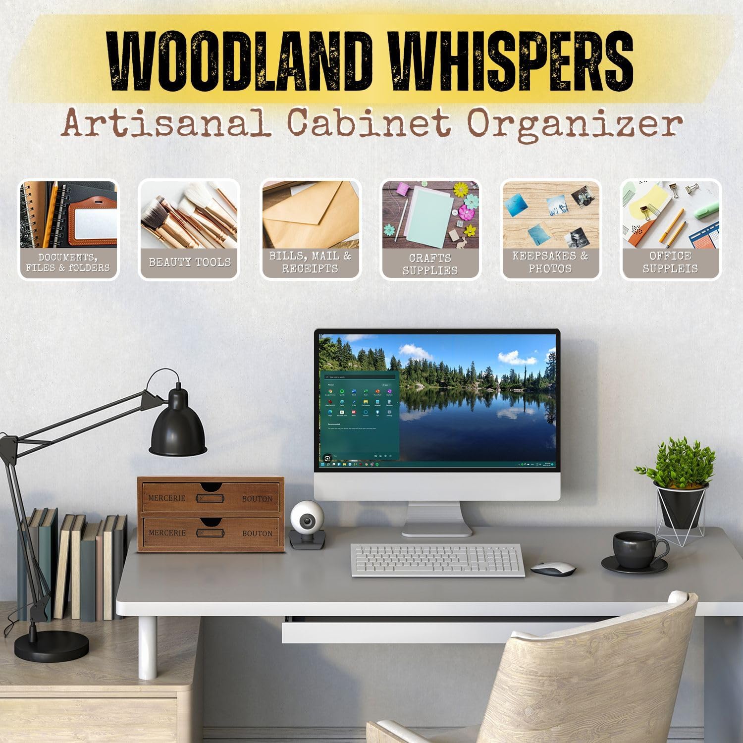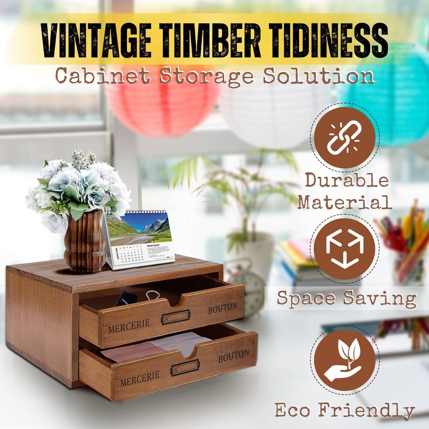 Flexzion Wooden Desktop Office Supplies Organizer with 2 Storage Drawers Set, 2-Tier Wood Tabletop Cabinet, Countertop Desk Accessories Box, for Home Workspace Counter Vanity Decor Art Craft Tool Mail