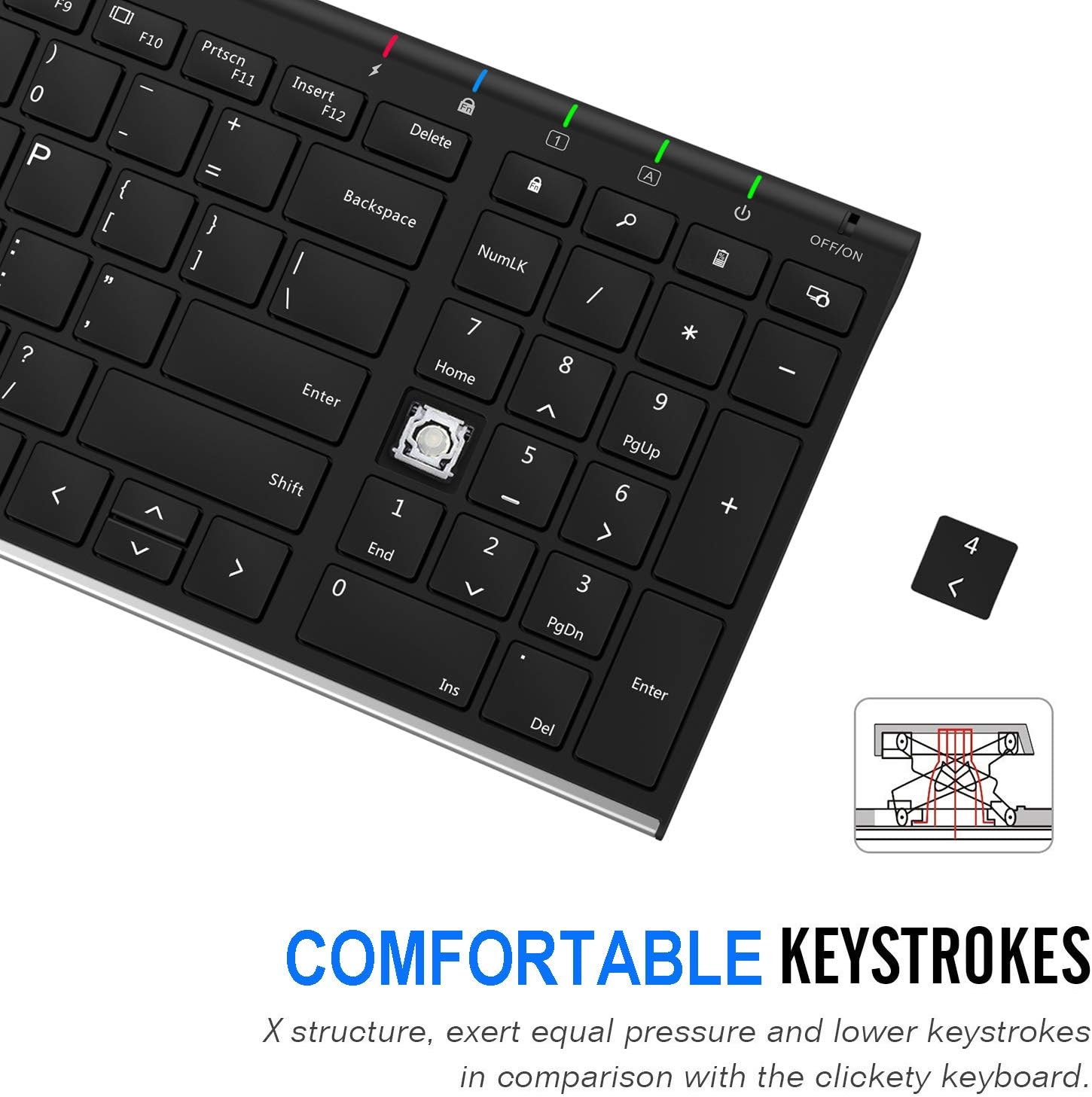 - Ergonomic design: Stainless steel material gives heavy duty feeling, low-profile keys offer quiet and comfortable typing.