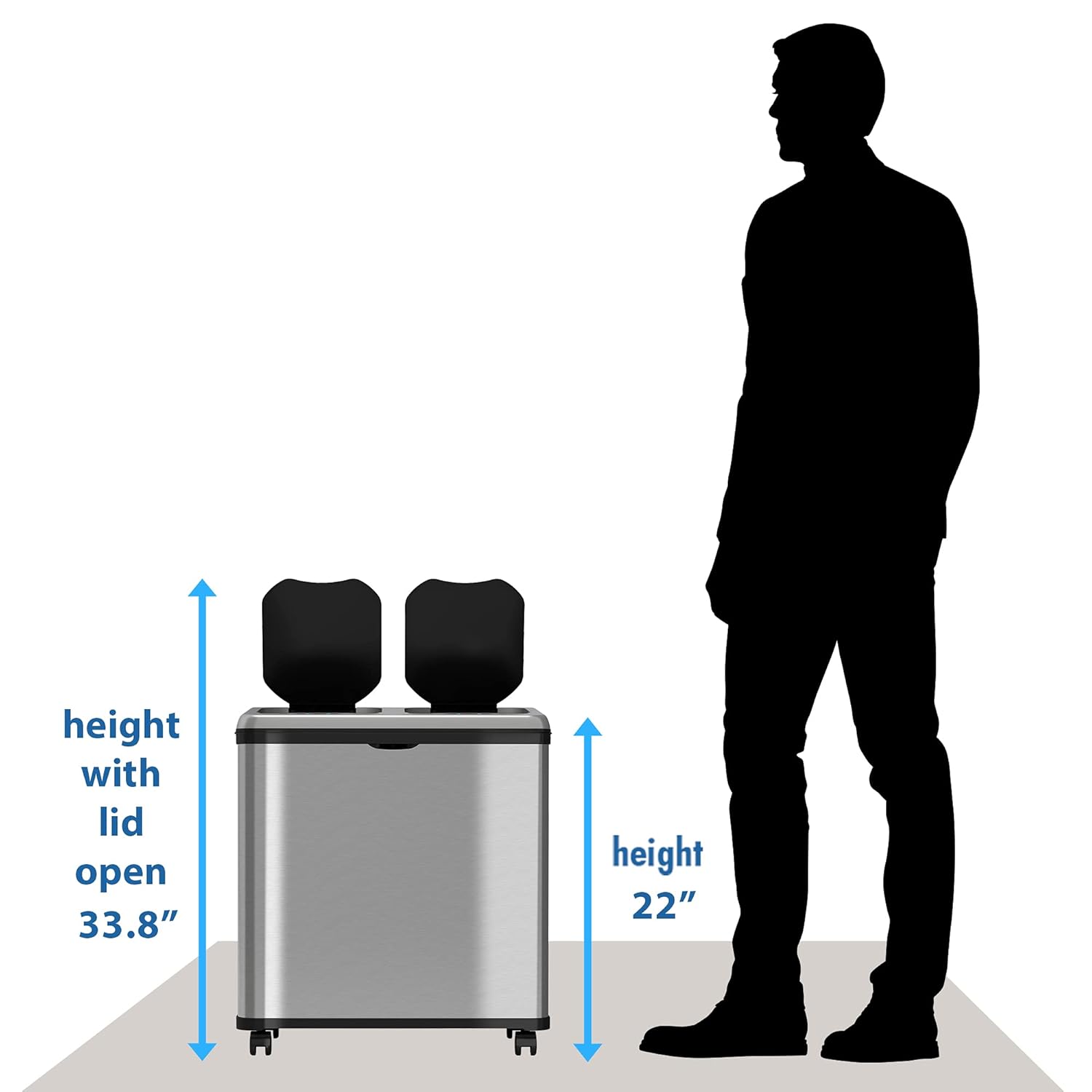 iTouchless 16 Gallon Touchless Sensor Trash Can and Recycle Bin with Wheels, 60 Liter Stainless Steel Dual-Compartment (2 x 8 Gallon) Kitchen Recycling and Garbage Trashcan