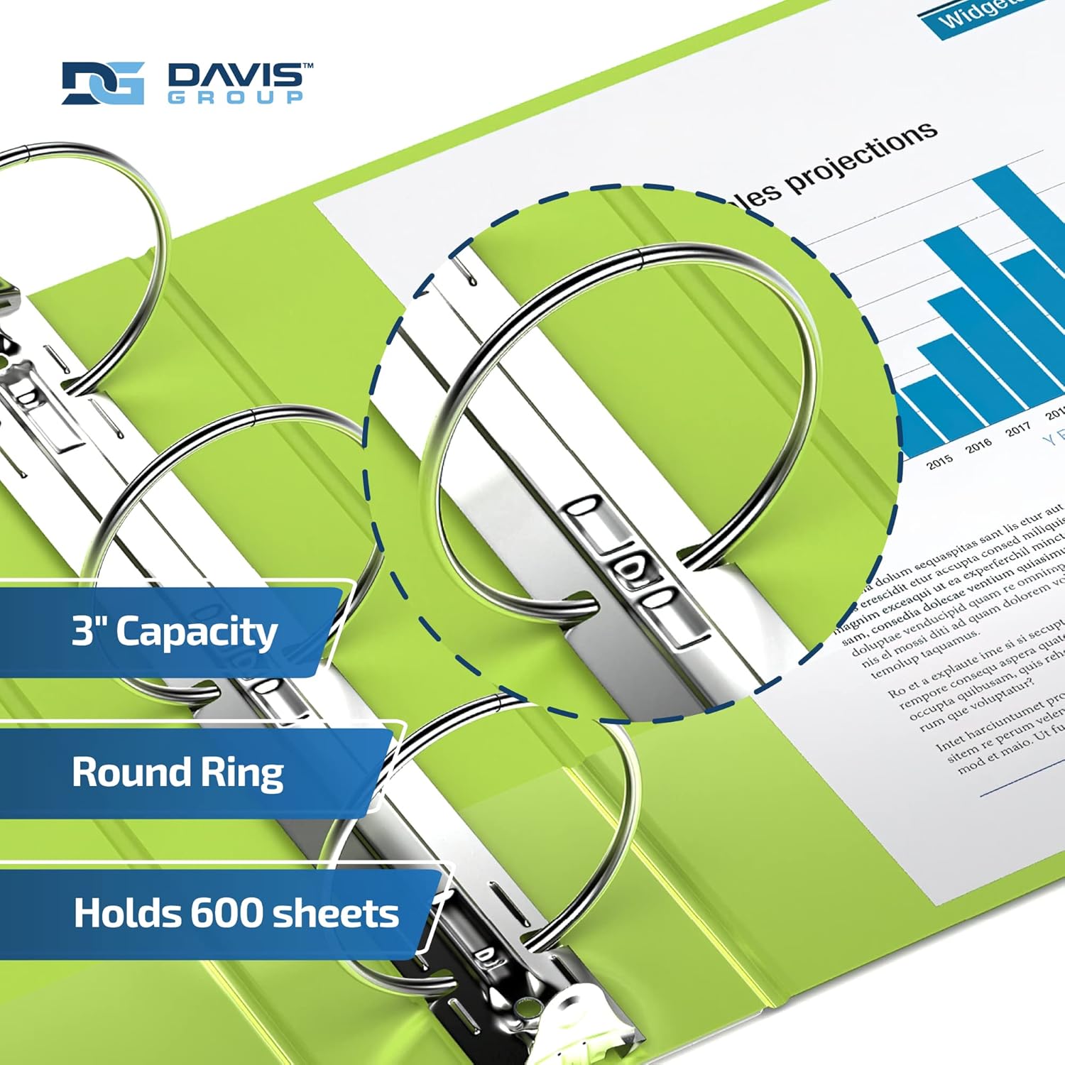 Easyview Premium 3-Ring Binders with Clear-View Covers and Round Rings, Binders for School or Office, 3 Inch, Pack of 6, Lime Green