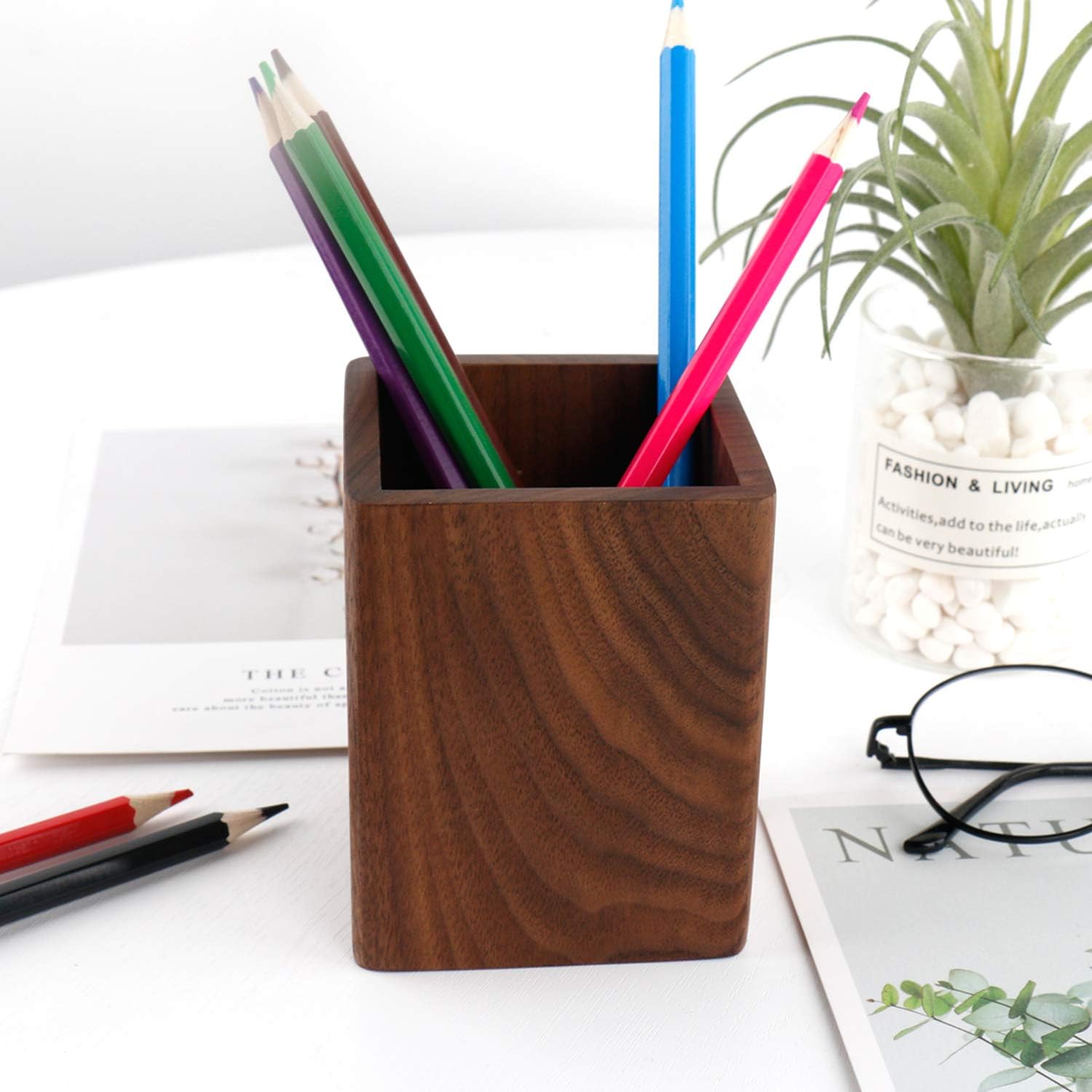 Walnut Pencil Holder Wood Pen Holder For Desk Pen Cup Organizer Ofiice Pencil Stand Simple(Black walnut)