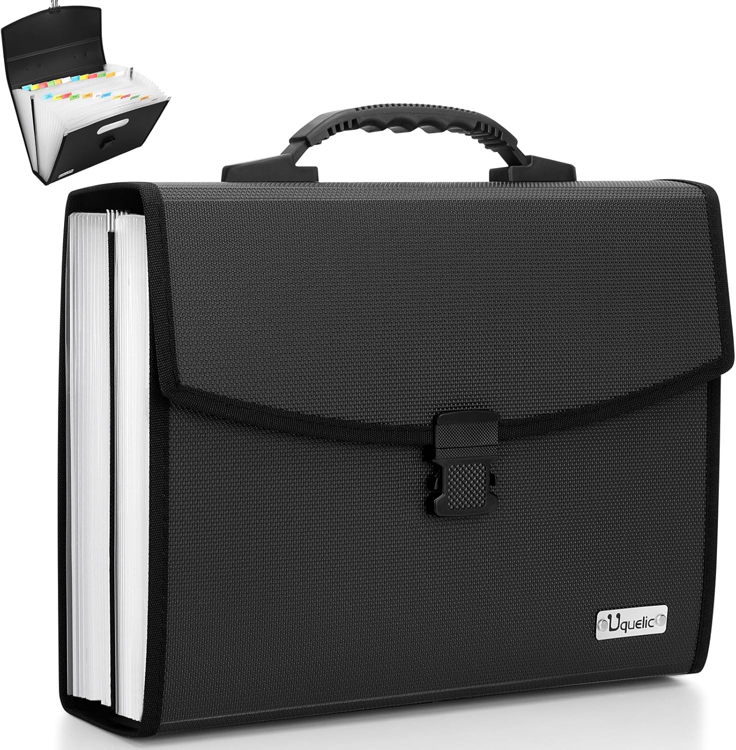 Uquelic 26 Pockets Expanding File Folder Organizer - Upgraded Durable Buckle, Accordion Folder Base with Ergonomic Portable Handle/Large A4 Letter Size Document Organizer, Folders with Pockets