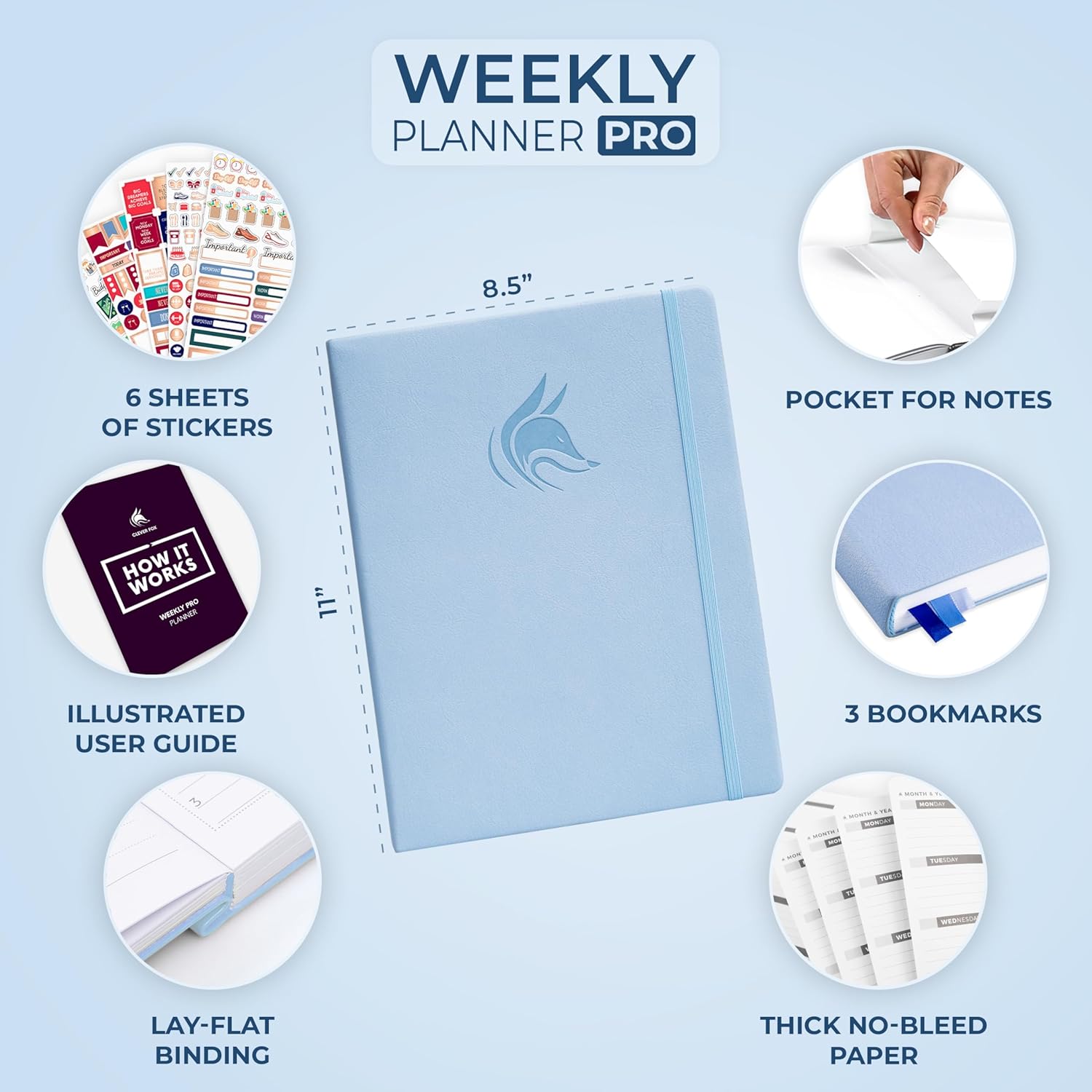 Clever Fox Planner PRO – Weekly & Monthly Life Planner to Increase Productivity, Time Management and Hit Your Goals, 8.5x11″ (Periwinkle)
