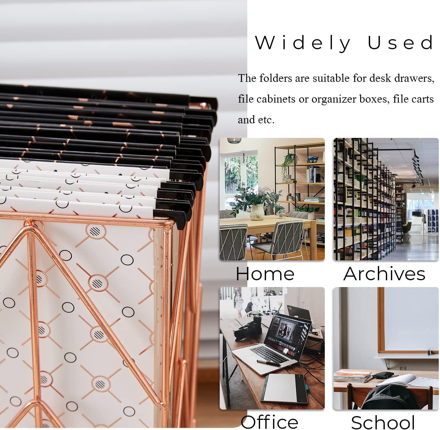 - Widely Used - Our decorative file folders are design for letter size paper, suitable for desk drawers, file cabinets or organizer boxes, file carts in your office, home and school. Perfect for gold file desk organizer