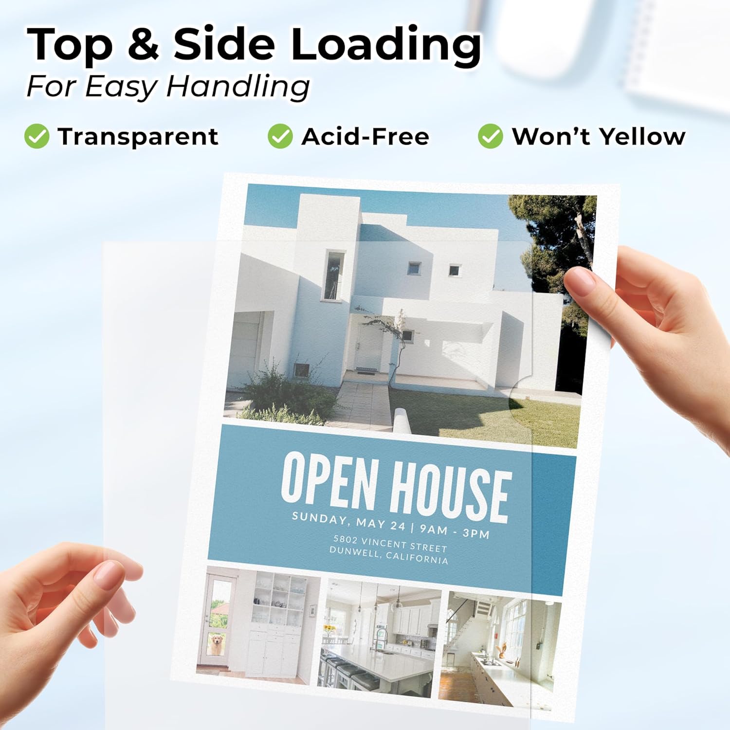- PROFESSIONAL DOCUMENT ORGANIZATION: Perfect clear folder sleeves for business presentations, client materials, home filing systems. Crystal-clear transparency for instant identification.