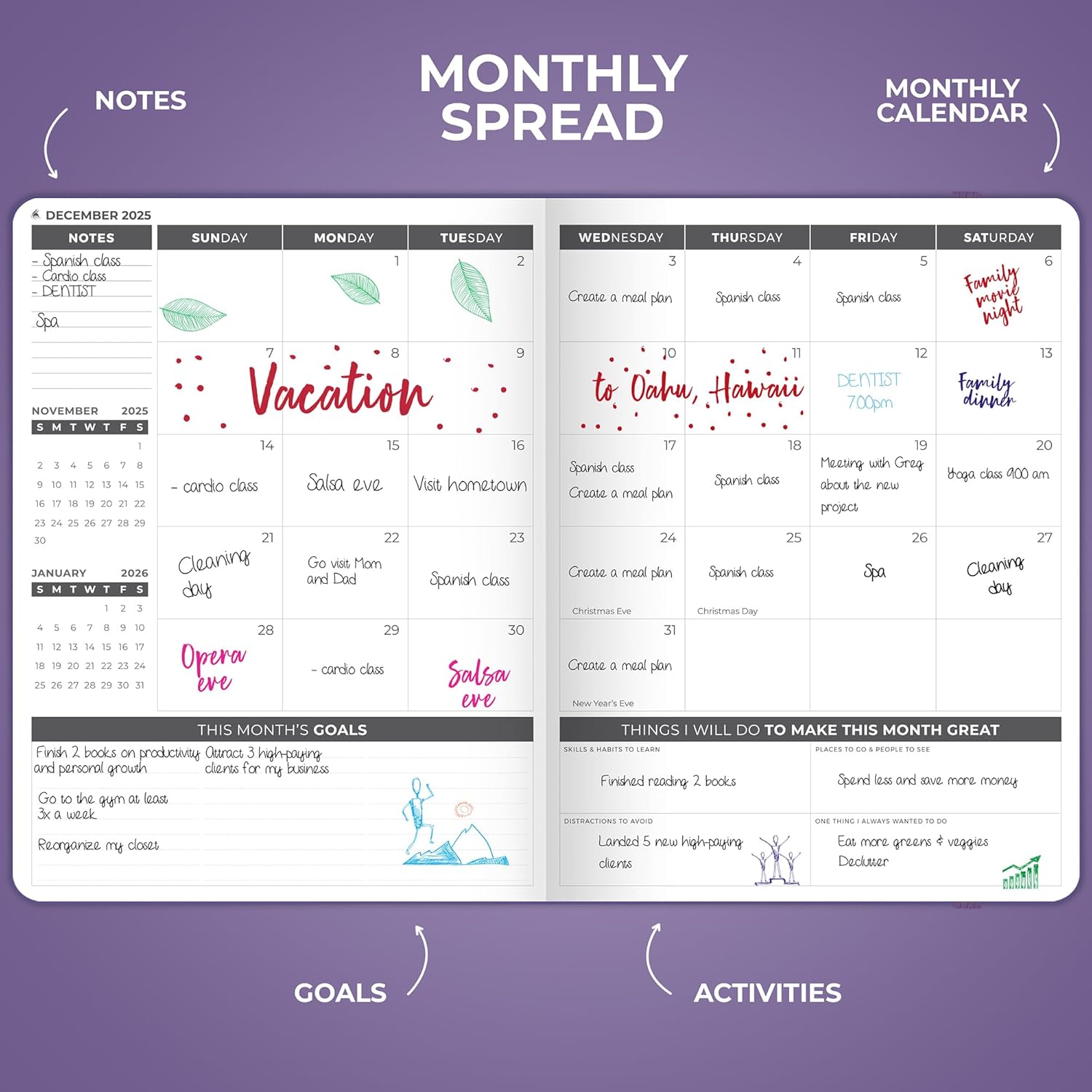 - CREATE A VISION FOR YOUR FUTURE, SET GOALS & START PLANNING – This goal-setting planner 2025 will help you create a vision for your life, define your global goals, and incorporate them into your agenda.