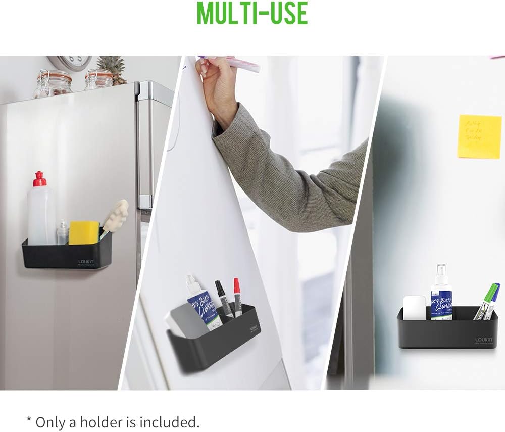 loukin Magnetic and Adhesive Marker Holder, Dry Erase Accessory Tray, Magnetic Storage Organizer for Whiteboard, Glass or Refrigerators (Black)
