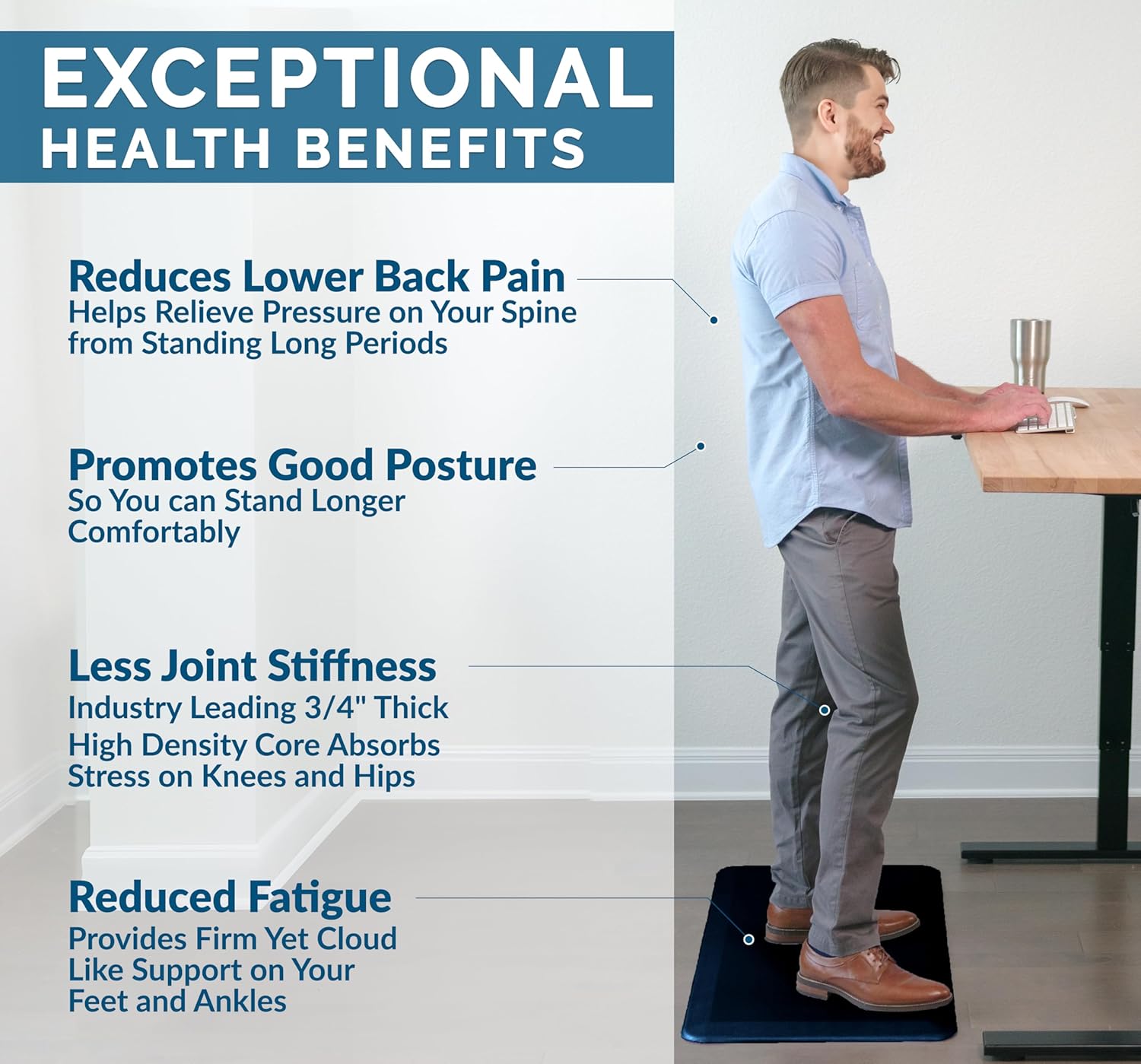 - Easy to Clean and Maintain: Simply wipe down the standing desk mat or anti-fatigue kitchen mat with a damp cloth for quick and easy maintenance, keeping your space clean and comfortable.