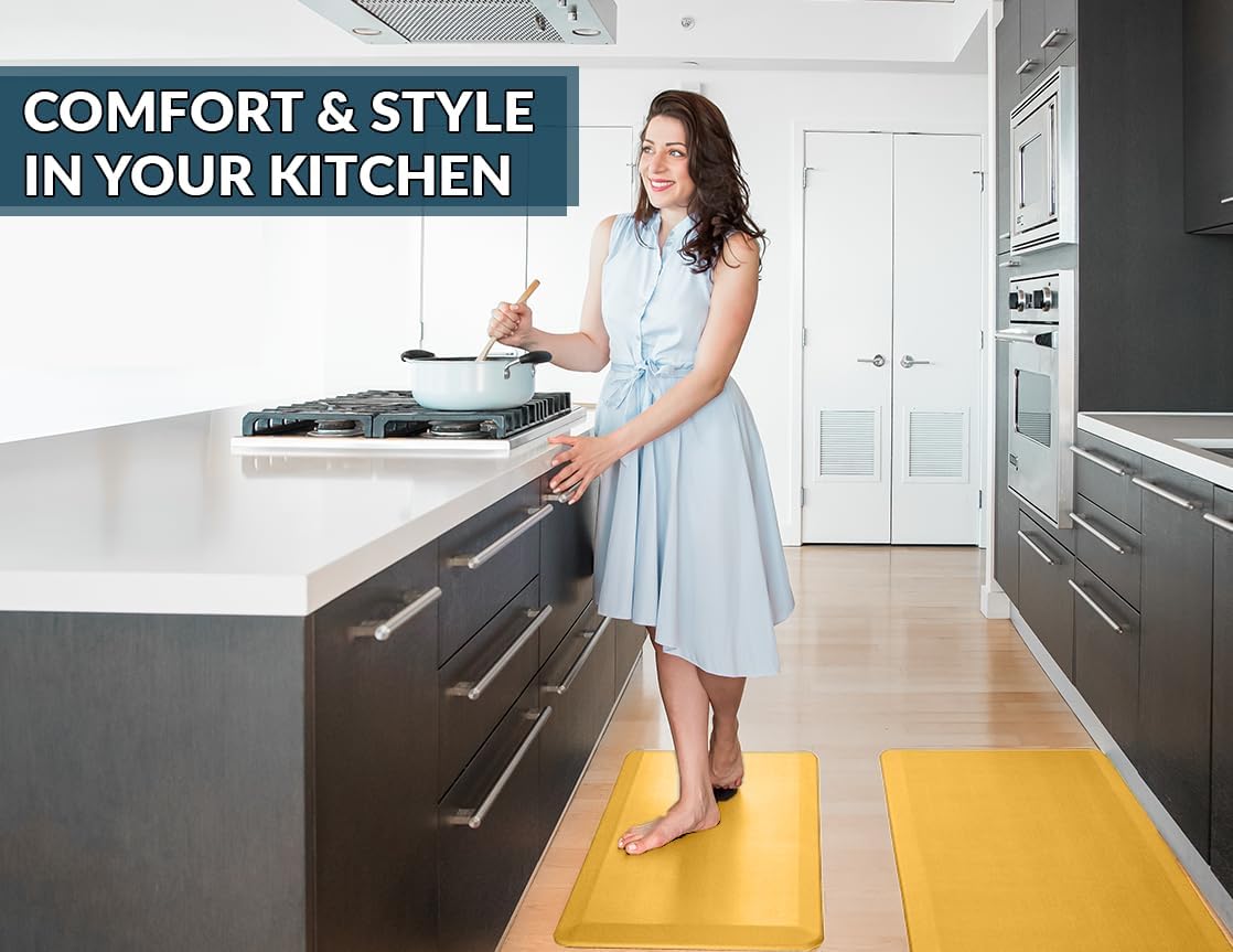 ComfiLife Anti Fatigue Floor Mat – 3/4 Inch Thick Kitchen Mats for Floor, Standing Desk Mat, Kitchen Rug – Comfort at Home, Office – Durable – Stain Resistant – Non-Slip Bottom (24" x 70", Mustard)