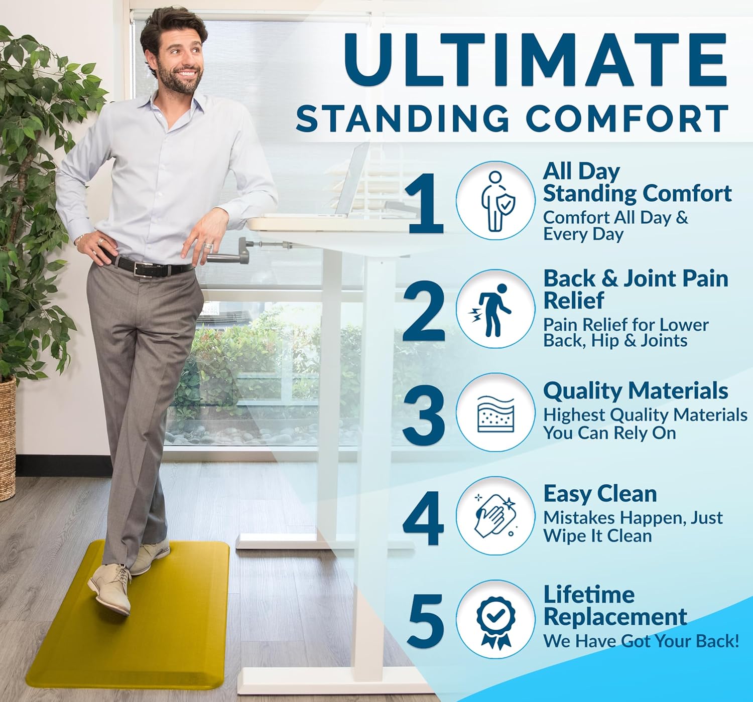 - Exceptional Comfort Anti Fatigue Mat: ComfiLife kitchen mats for floor enhance comfort while standing. It is professionally engineered and can be used as padded kitchen mat or for your standup desk that will not lose support over time. Ideal for use as a standing desk mat., kitchen mats cushioned anti fatigue, kitchen floor mat or anti-fatigue mats for kitchen floor.