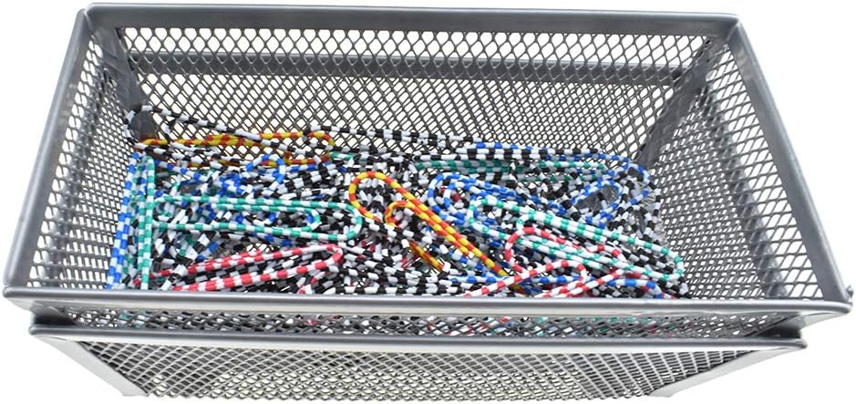 HAHIYO Stackable Mesh Tray Cup 6 x 3 x 2 inches Sturdy Container for Desk Drawer Organizer Collection for Home Office School kitchen Soft Foam Feet No Sharp Edges 2 Pack Silver