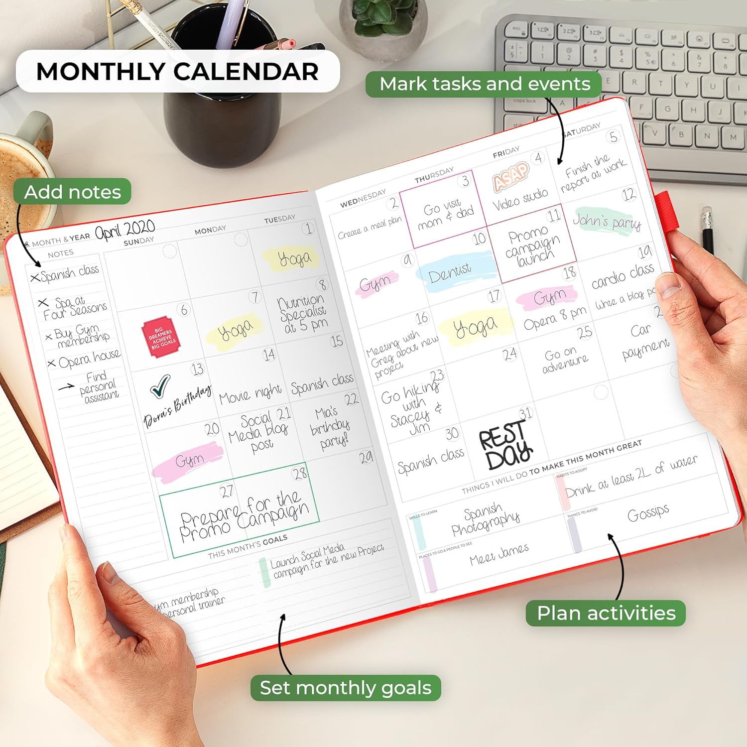 - A4 SIZE & UNDATED LAYOUTS - This calendar organizer is undated, meaning you can start anytime. It has a large A4 format – perfect if you have larger handwriting or like to plan everything in detail.