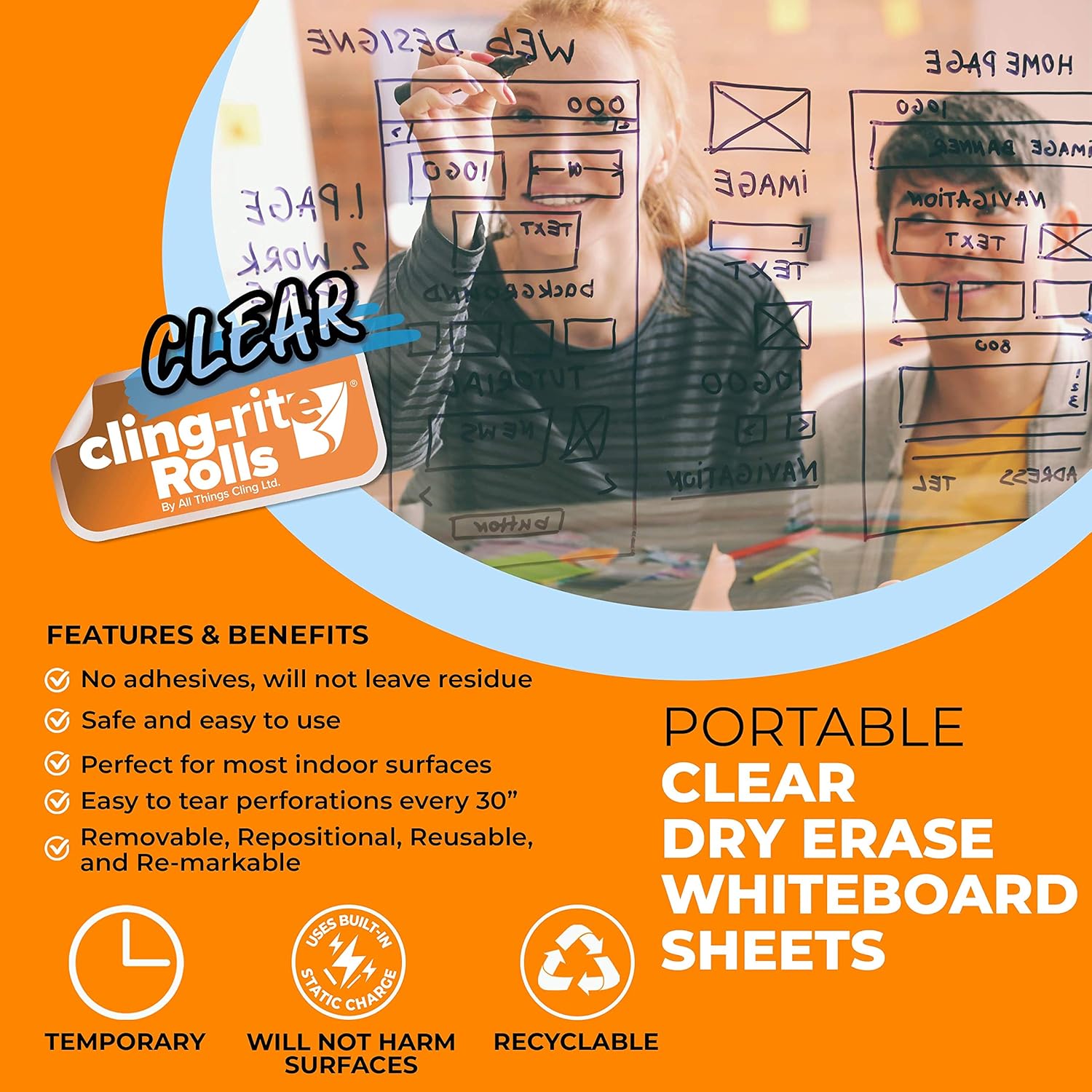 - ๐๐๐ฉ๐จ๐ฌ๐ข๐ญ๐ข๐จ๐ง๐๐๐ฅ๐ & ๐๐๐จ-๐ ๐ซ๐ข๐๐ง๐๐ฅ๐ฒ: Move these clear dry erase sheets easily from one location to another without leaving residue. The embedded static charge ensures a clean, mess-free experience. When youโre done, simply recycle itโeco-friendly and convenient!