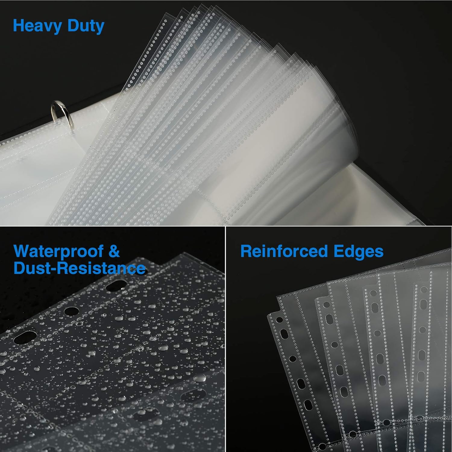 - Heavy Duty: The photo protector pages are made from 10C (0.1mm) thick polypropylene and reinforced at the binding edge. These 4''x 6'' photo album refill pages help you protect your photos and cards from dirt, water, and fingerprint. It is ideal for frequently referenced photos or Postcards and long-term storage.