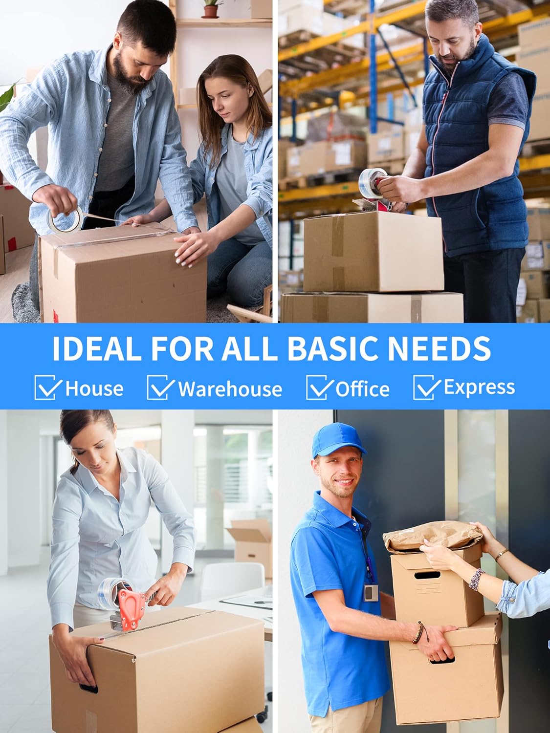 - Multiple Use: Apply at the depot, home and office use. The tape could be used for shipping, packaging, box and carton sealing, removing clothing dust and pet hair.