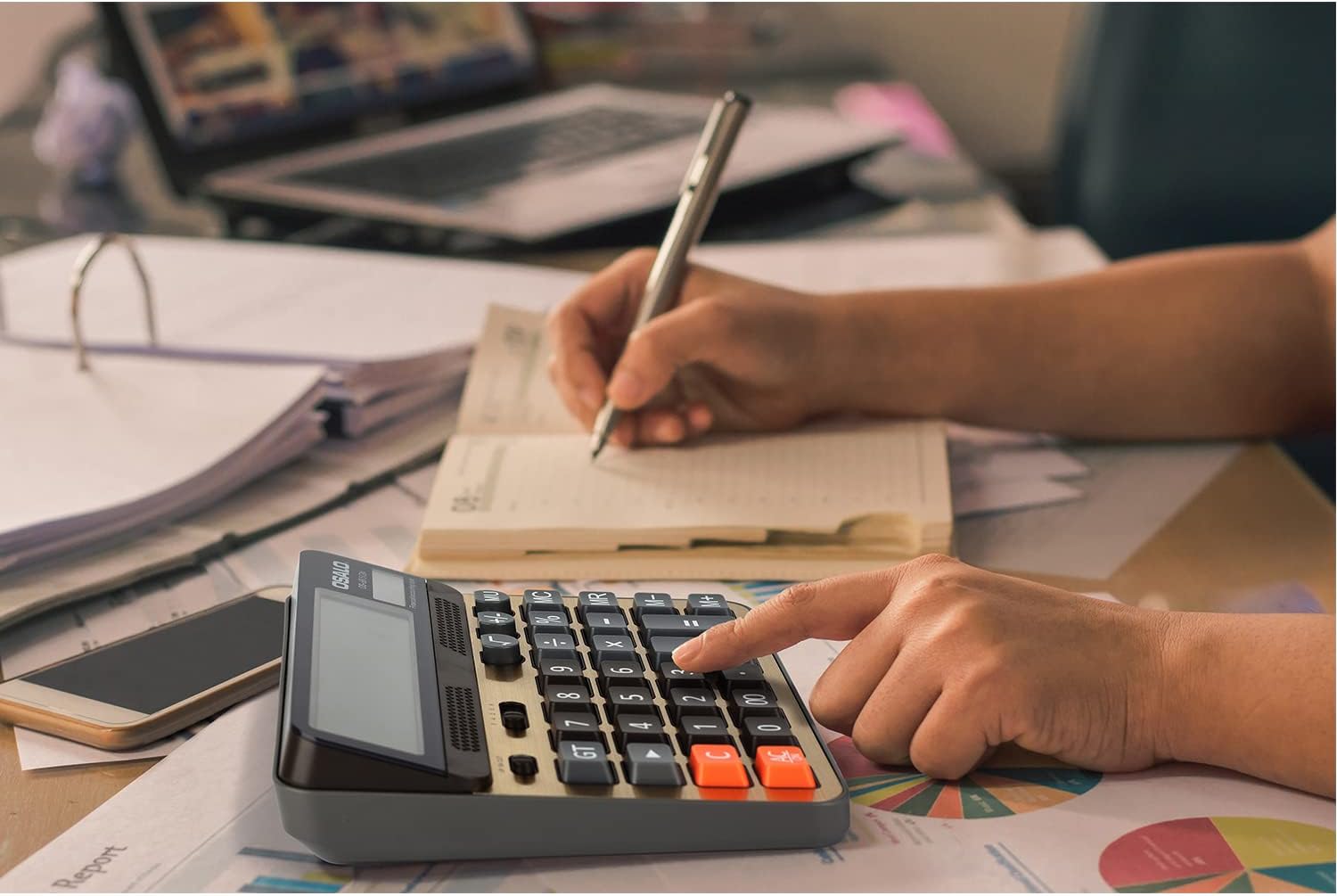 - 【Ergonomic Angle Display&Large Button】When you put the calculator on the desktop, the 30°large display is just opposite your sight, more clear than a straight display. Large and separated keys, make your every press more accurate.