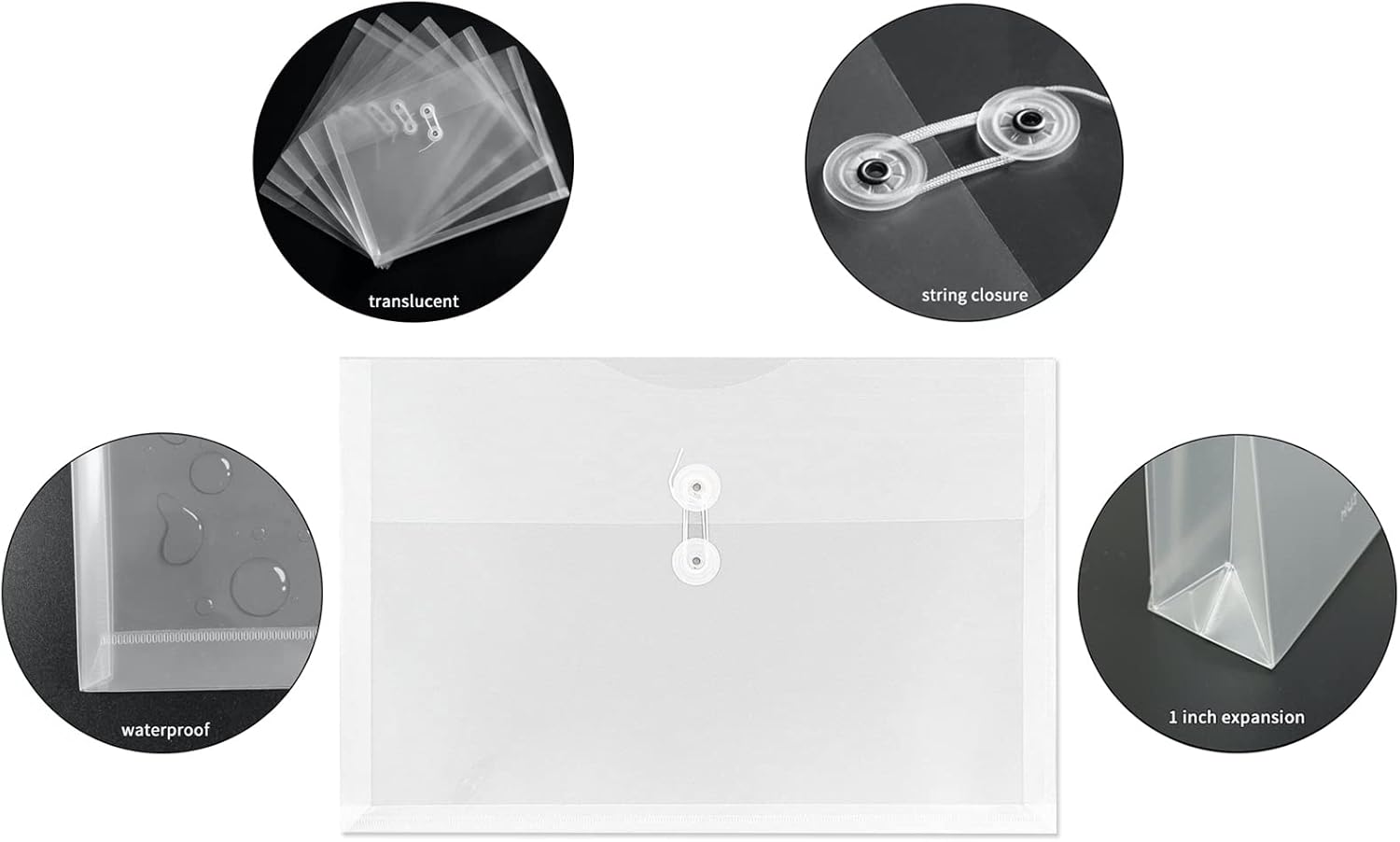 - Well-Design: Translucent file pockets help recognize the items inside at a glance. String closure is more secure for the content inside and prevent from falling out