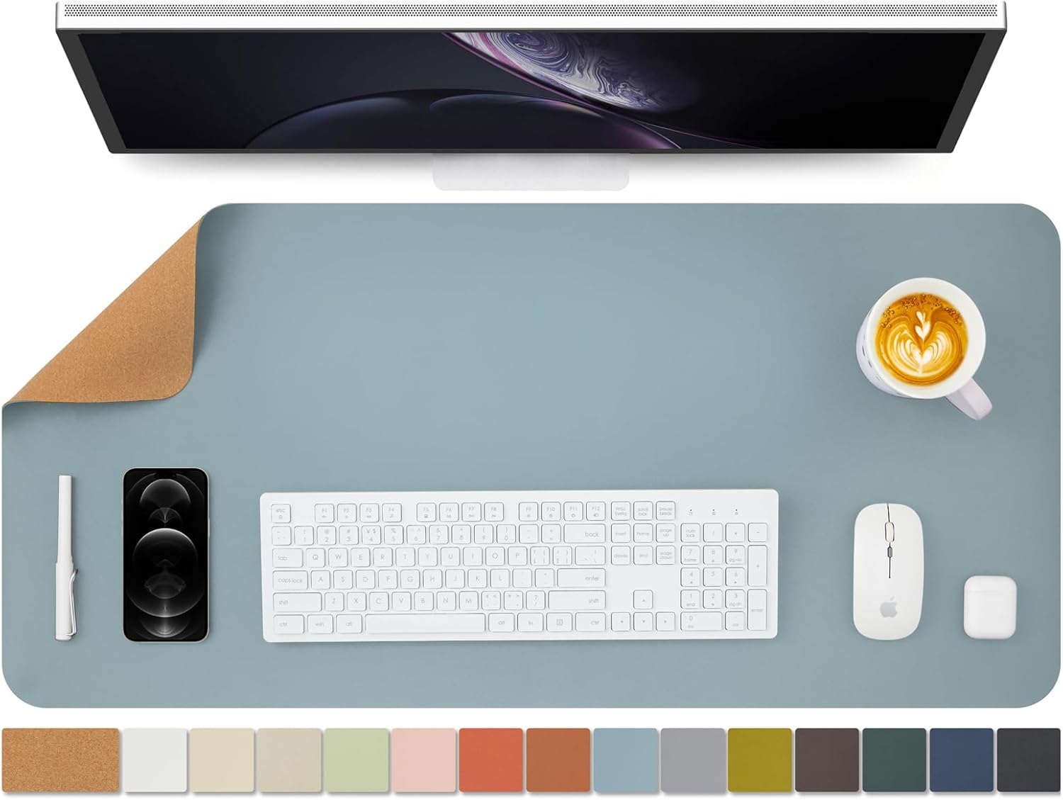 - Eco-friendly dual-sided design with Versatile Surface: Our desk mat combines a sustainable cork side and a premium PU leather side, offering both versatility and eco-conscious style for your workspace. The smooth surface supports seamless mouse operations and effortless writing tasks, promoting desk organization.